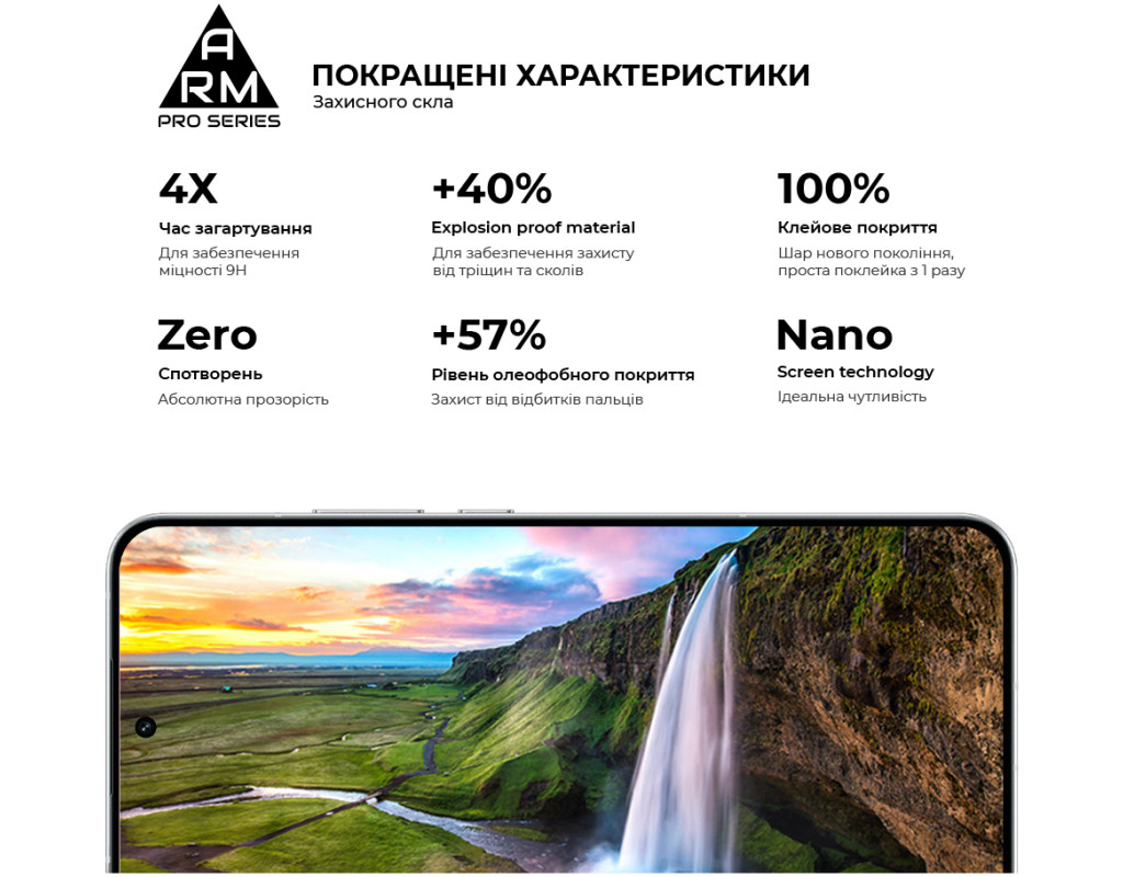 Захисне скло Armorstandart Pro Series - це абсолютно новий рівень захисту дисплея смартфона. У виробництві використовується матеріал Japenese Asahi Glass, який проходить загартування впродовж 4 годин. Це забезпечує ідеальну прозорість захисного покриття без спотворень зображення, а також потужний захист від тріщин і подряпин. Скло ніяк не впливає на чуйність тачскрина. У ньому міститься спеціальний матеріал, що перешкоджає появі відколів. Верхня частина скла містить покращене олеофобне й гідрофобне покриття. Під час використання скла це забезпечує природні тактильні відчуття - пальці легко ковзають по поверхні. Водночас зображення відбивається з автентичною яскравістю й чіткістю без спотворень. Задня частина по всій площі покрита клейовою основою нового покоління. Завдяки цьому досягається повний брак пухирців і можливість переклеювання скла в разі первісного нерівного встановлення. Захисне скло Armorstandart Pro Series має оптимальні габарити та товщину на 0,3 мм. Передбачено вирізи під усі датчики, камери та роз'єми. До комплекту входить усе потрібне для швидкого та комфортного встановлення. Особливості: