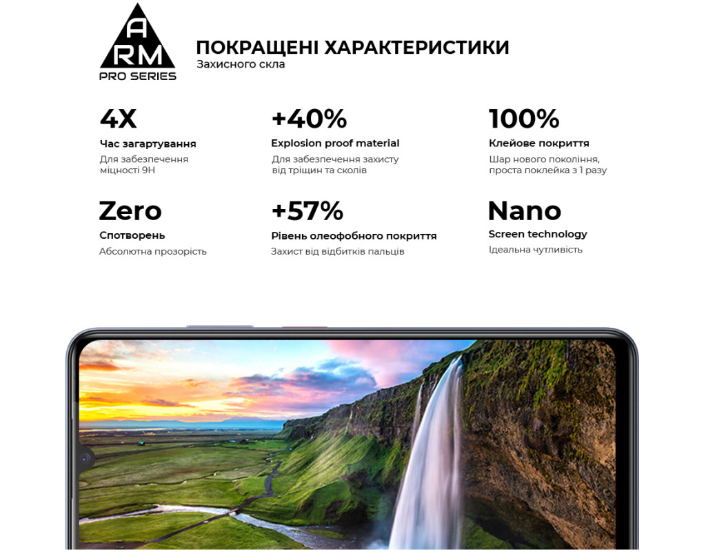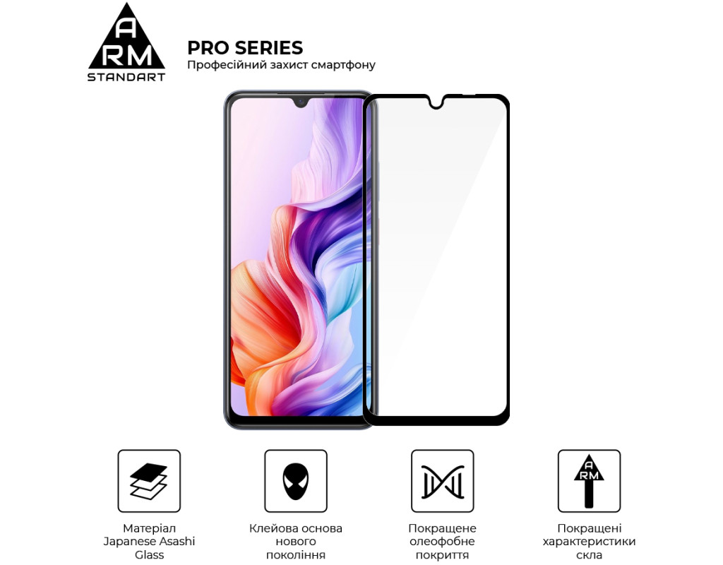 Захисне скло Armorstandart Pro Series - це абсолютно новий рівень захисту дисплея смартфона. У виробництві використовується матеріал Japenese Asahi Glass, який проходить загартування впродовж 4 годин. Це забезпечує ідеальну прозорість захисного покриття без спотворень зображення, а також потужний захист від тріщин і подряпин. Скло ніяк не впливає на чуйність тачскрина. У ньому міститься спеціальний матеріал, що перешкоджає появі відколів. Верхня частина скла містить покращене олеофобне й гідрофобне покриття. Під час використання скла це забезпечує природні тактильні відчуття - пальці легко ковзають по поверхні. Водночас зображення відбивається з автентичною яскравістю й чіткістю без спотворень. Задня частина по всій площі покрита клейовою основою нового покоління. Завдяки цьому досягається повний брак пухирців і можливість переклеювання скла в разі первісного нерівного встановлення. Захисне скло Armorstandart Pro Series має оптимальні габарити та товщину на 0,3 мм. Передбачено вирізи під усі датчики, камери та роз'єми. До комплекту входить усе потрібне для швидкого та комфортного встановлення. Особливості: