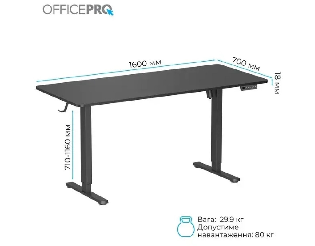 Стіл із електрорегулюванням висоти Officepro серії ODE1670 розроблений для бездоганної інтеграції в будь-який домашній інтер'єр або корпоративне середовище, пропонує ідеальне поєднання функціональності, довговічності та доступності. Завдяки потужному двигуну стіл забезпечує плавне, тихе та надійне регулювання висоти одним натисканням кнопки.