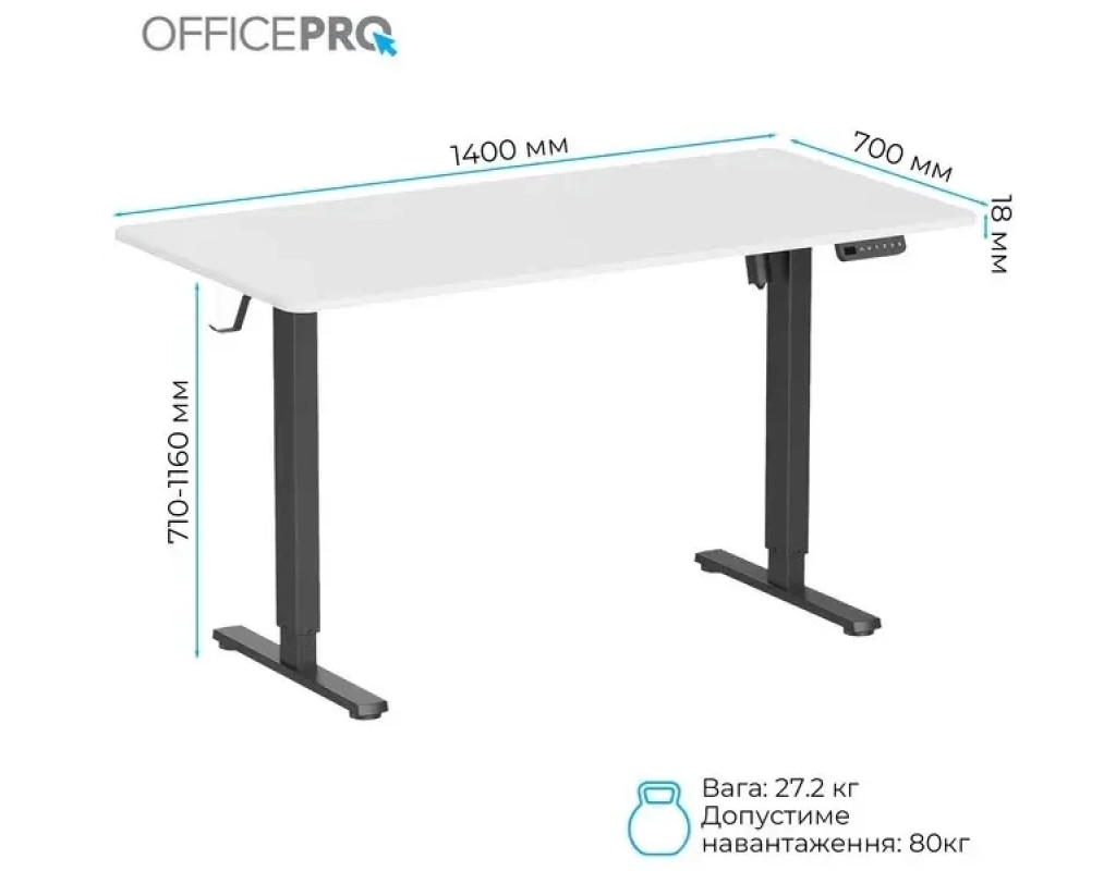 Стіл із електрорегулюванням висоти Officepro серії ODE1670 розроблений для бездоганної інтеграції в будь-який домашній інтер'єр або корпоративне середовище, пропонує ідеальне поєднання функціональності, довговічності та доступності. Завдяки потужному двигуну стіл забезпечує плавне, тихе та надійне регулювання висоти одним натисканням кнопки.