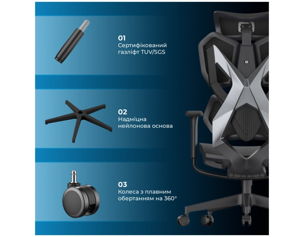 Ергономічне геймерське крісло Sihoo X5C створене для максимального комфорту під час тривалих ігрових або робочих сесій. Його повністю сітчасте покриття забезпечує ефективну вентиляцію та запобігає перегріванню. Подвійний шарнірний підголівник регулюється по висоті та куту, знімаючи напругу з шиї. Спинка має три зони підтримки та синхронний механізм нахилу з фіксацією у трьох положеннях — 98°, 112° і 125°. 3D-підлокітники регулюються по висоті, вперед/назад та в сторони, синхронізуючись із нахилом спинки. |