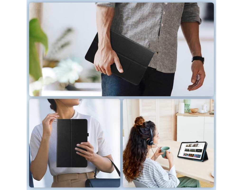 | Витончений та функціональний чохол BeCover SlimBook. Стильний та міцний чохол, чудово захищає планшет від подряпин та механічних пошкоджень. Залишає повний доступ до всіх роз'ємів та кнопок управління, має виріз для камери. Матеріал: високоякісна PU-шкіра зовні та додатковий захисний шар із мікрофібри всередині Ультратонка, легка та міцна конструкція. Відмінно захищає планшет від подряпин та механічних пошкоджень. Конструкція чохла дозволяє використовувати його як настільна підставка з двома кутами нахилу: менший нахил зручніший для набору тексту та серфінгу в інтернеті, більше — для перегляду мультимедійного контенту. |