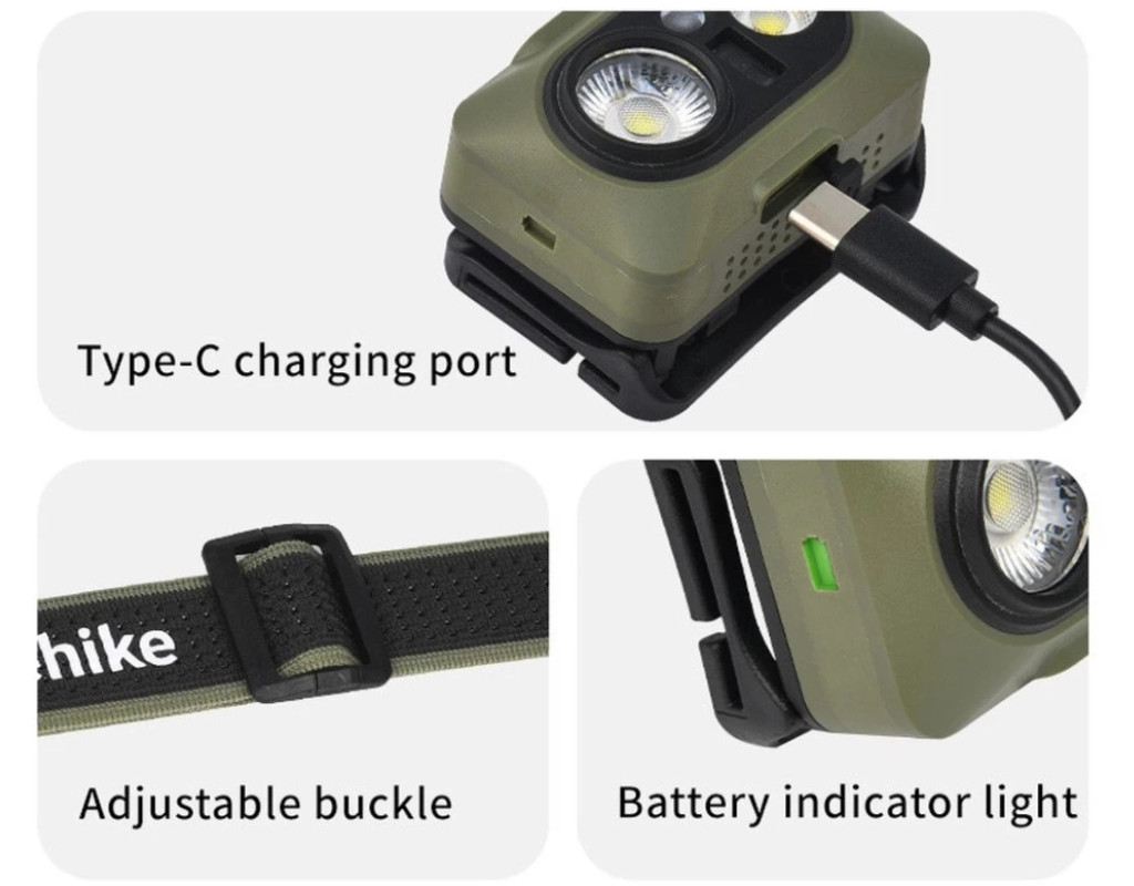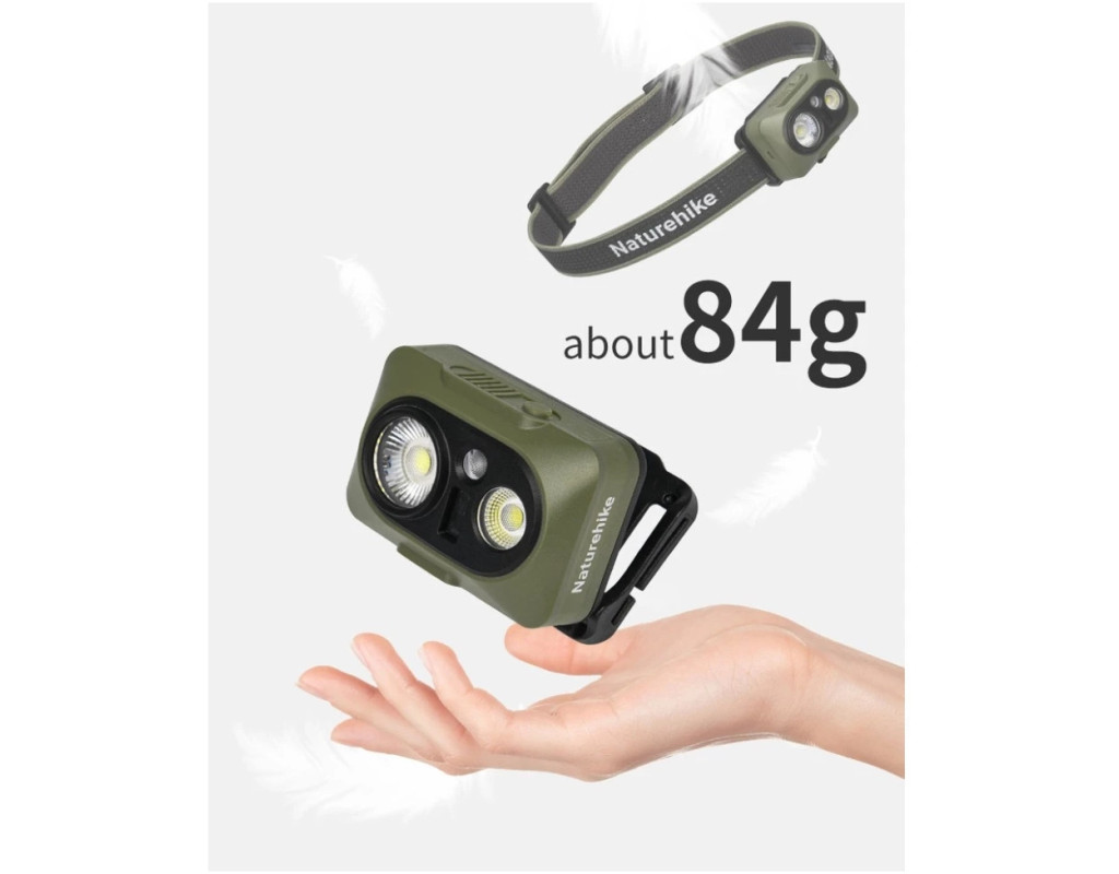 Налобний ліхтар Naturehike генерує 2 типи освітлення: біле (6000К) та червоне. Яскравість сягає 500 лм з можливістю підсвічування дистанції до 80 м. Керування подвійним перемикачем або помахом руки перед лінзою (інтелектуальний датчик). Живлення від акумулятора 18700 мАгод із заряджанням через порт USB-C. Герметичний корпус з ABS-пластику та PC важить 84 г. Завдяки 3 випромінювачам ліхтар Naturehike CNK2450ZM010 має розширений функціонал, актуальний для активного відпочинку та професійних завдань. У моделі є відразу 2 світлодіоди Cree XTE S4. Вони генерують освітлення холодного білого спектра (6000К) для детального підсвічування на відстані до 80 м. Також є червоний діод 2835, що працює в кількох режимах: сигнальний маячок і постійне світло-нічник, який не збиває нічний зір та не приваблює нічних комах. Ви можете керувати яскравістю променя без взаємодії з кнопками управління — у ліхтарі є інтелектуальний датчик, який реагує на помахи долонею на відстані 15–10 см перед лінзою. Кріплення передбачає регулювання кута нахилу пристрою на 80°. Інші особливості налобного ліхтаря Naturehike CNK2450ZM010: