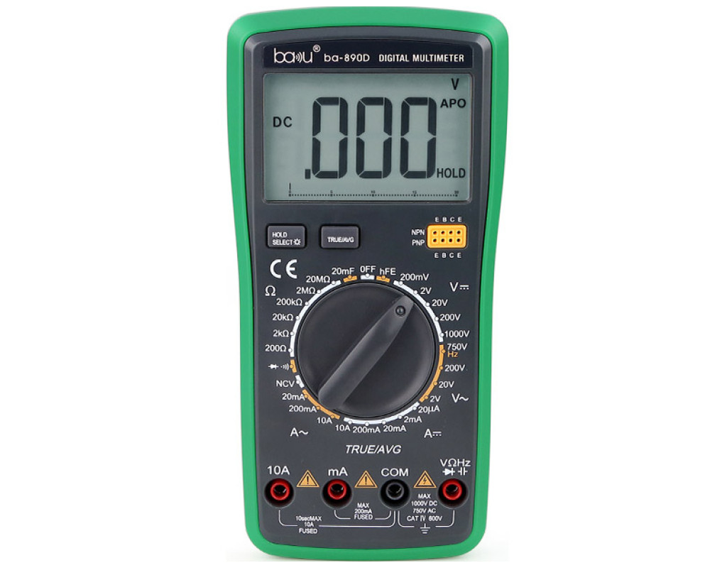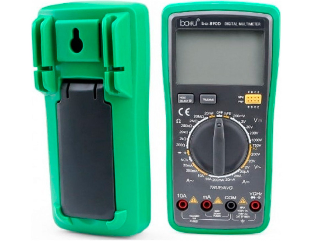 Цифровий Мультиметр BAKKU BK-A830L - надійний помічник в будинку, гаражі, на дачі. З його допомогою ви зможете виміряти багато різних параметрів. Відремонтувати побутову техніку, електроніку автомобіля і мотоцикла, перевірити проводку на дачі? З усіма цими завданнями допоможе впоратися мультиметр! Приклад експлуатації пристрою: Необхідно встановити щупи в гніздо і виставити кругової перемикач в необхідні для вас режим, таким чином проводиться вимір. Через пару секунд значення відобразяться на дисплеї, їх можна зафіксувати натиснувши кнопку HOLD. Кілька простих дій і все готово. Особливості: