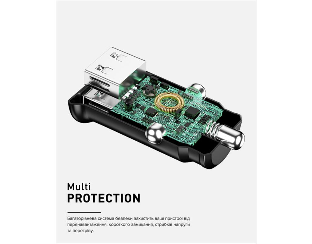 | Автомобільні зарядні пристрої оснащені адаптивною технологією Smart CHIP, яка автоматично виявляє потрібну саме вашому пристрою потужність, та спрямовує її, забезпечуючи найбільш оптимальну швидкість заряду.