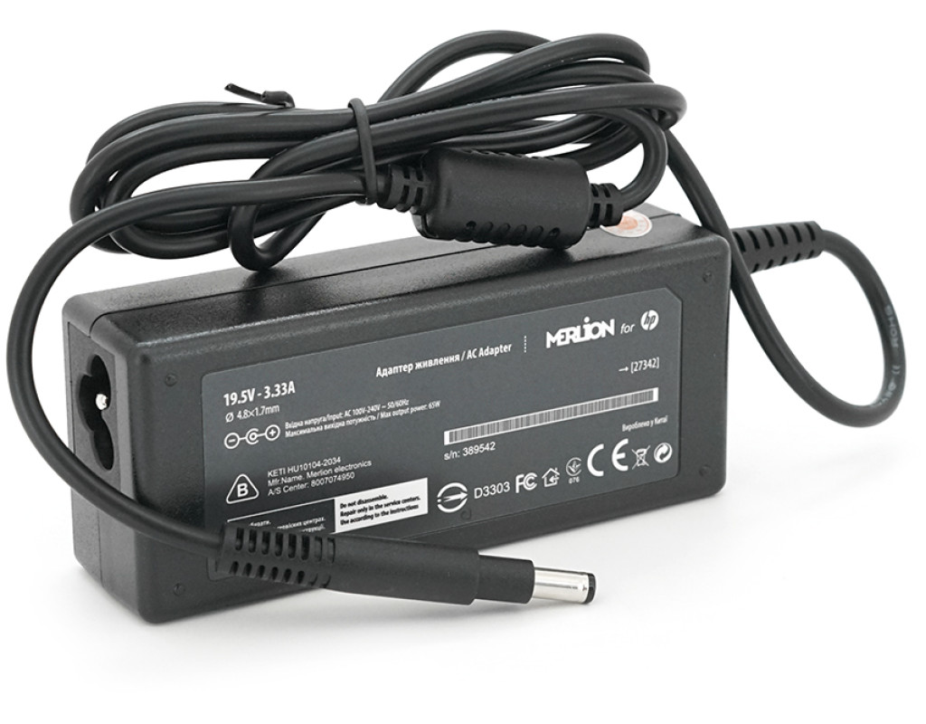 | Блок живлення MERLION для ноутбука HP: 1. Напруга: 19.5 Вольт. 2. Струм: 3.33 Ампера. 3. Потужність: 65 Ватт. 4. Штекер: 4.8 мм (зовнішній діаметр) / 1.7 мм (внутрішній діаметр). 5. Довжина кабелю: 0,9 метра. Цей блок живлення призначений для ноутбуків HP та забезпечує електроживлення з напругою 19.5 Вольт та струмом до 3.33 Ампера, що становить 65 Ватт. Штекер розміром 4.8*1.7 мм сумісний з відповідними роз`ємами на ноутбуках HP. Довжина кабелю складає 0,9 метра, що зазвичай достатньо для зручного підключення ноутбука до розетки. |