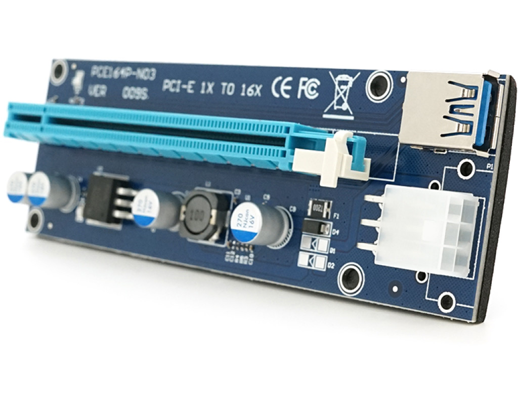 Плата PCE164P-N09 (V009S-Plus) Riser PCI-EX, x1=>x16, USB 3.0, DC12V(PCI-E / 6pin), конденсатори 270, VER009S,Пакет
