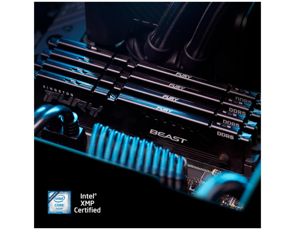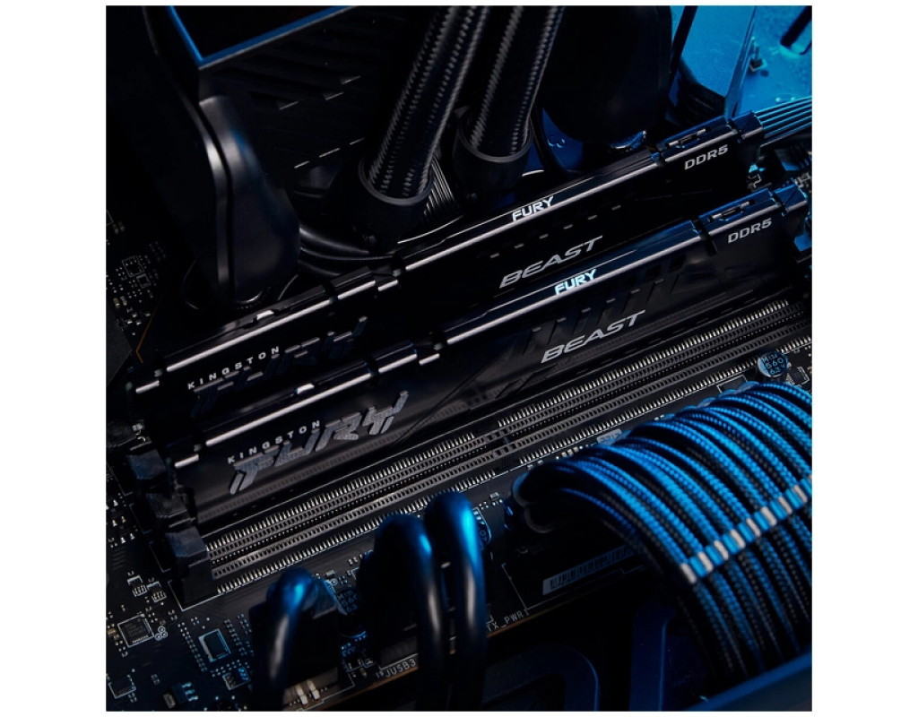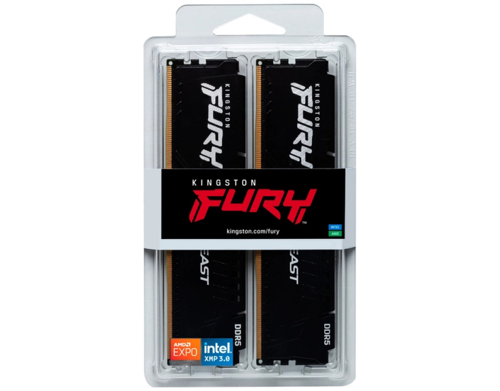 Комплект оперативної пам'яті Kingston FURY Beast DDR5 загальним об'ємом 128 ГБ (KF556C40BBK2-128) складається з двох двоканальних 64 ГБ DDR5-5600 CL40 модулів, зібраних з 16 чіпів щільністю 4Gx8 біт, і призначений для підвищення продуктивності сучасних ПК — як в іграх, так і в завданнях стрімінгу, редагування відео високої роздільної здатності, рендерингу та інших ресурсоємних додатках. KF556C40BBK2-128 оснащений теплорозподільниками чорного кольору. Крім стандартного профілю JEDEC (DDR5-4800 CL40-39-39 при 1,1 В), модулі оснащені двома профілями AMD EXPO (DDR5-5600 CL40-40-40 і DDR5-5200 CL40-40-40 при 1,25 В) і двома профілями Intel XMP 3.0 з аналогічними характеристиками. З чудовою швидкістю, подвоєною з 16 до 32 кількістю банків і збільшеною з 8 до 16 довжиною пакета, Kingston FURY Beast DDR5 ідеально підходить для геймерів і ентузіастів, яким потрібна висока продуктивність на платформах наступного покоління. Для підвищення швидкості, ємності та надійності, модулі пропонують розширені можливості, включаючи корекцію помилок на кристалі (On-die ECC, ODECC), два 32-бітних підканали для підвищення ефективності та вбудовану схему управління живленням (PMIC), яка забезпечує стабільну напругу і точне підлаштування прямо на модулі пам'яті. При роботі в найекстремальніших умовах — будь то стримінг в 4K і вище, професійний 3D-рендеринг або важка анімація — Kingston FURY Beast DDR5 виводить продуктивність на новий рівень, зберігаючи при цьому стильний зовнішній вигляд. Модулі протестовані та схвалені провідними світовими виробниками материнських плат — MSI, ASUS, ASRock і Gigabyte*. Крім того, пам'ять отримала сертифікацію AMD EXPO, що забезпечує простий, стабільний і безпечний розгін на платформах AMD AM5. А завдяки підтримці Intel XMP 3.0, модулі можна розігнати і на сумісних системах Intel. Як і вся продукція Kingston, пам'ять серії FURY Beast DDR5 відрізняється високою надійністю і поставляється з обмеженою довічною гарантією. Особливості Kingston FURY Beast DDR5: