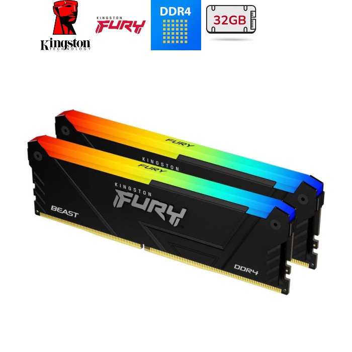 Модуль пам'яті для комп'ютера DDR4 32GB (2x16GB) 3200 MHz Beast RGB Black Kingston Fury (ex.HyperX) (KF432C16BB12AK2/32WP)
