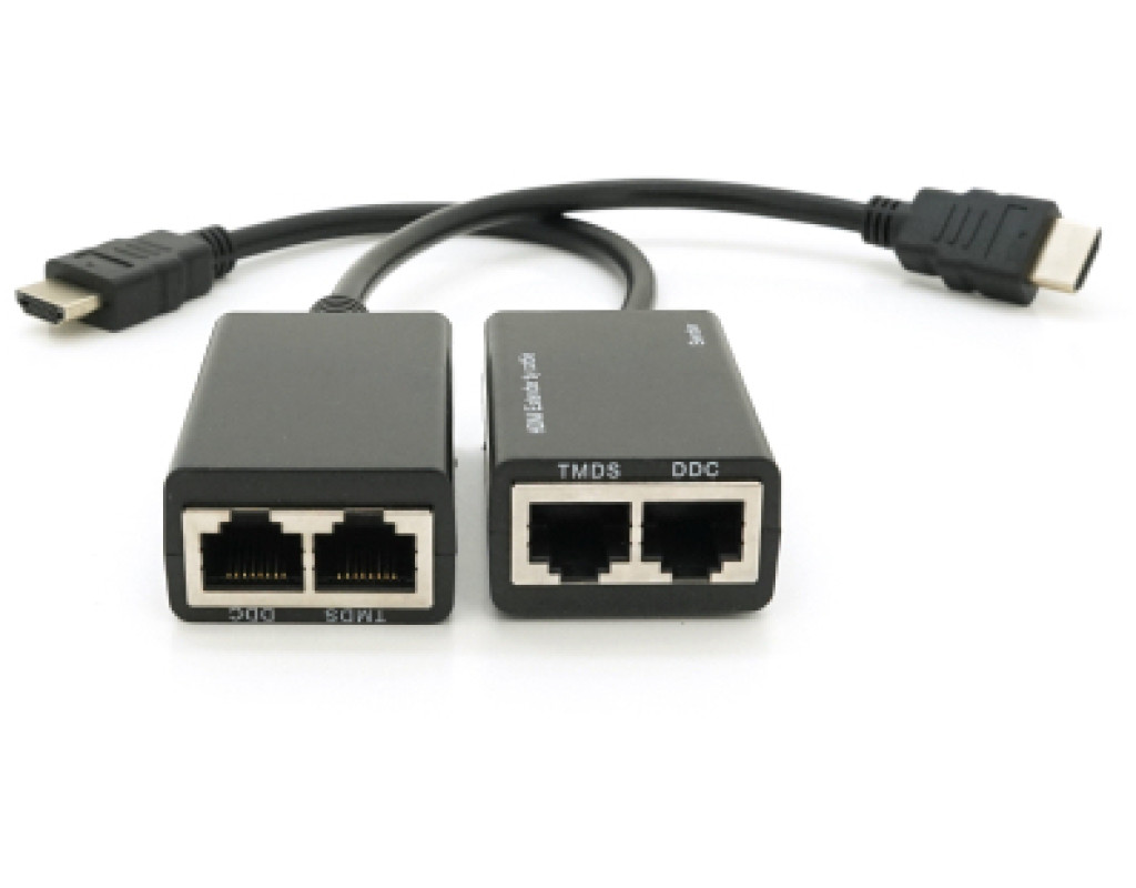 HDMI підовжувач по витих парах використовується для з`єднання між собою комп`ютера, плеєра або іншого пристрою, що управляє з пристроєм виведення. HDMI підовжувач дозволяє передавати сигнал без втрати якості на відстань до 30м.