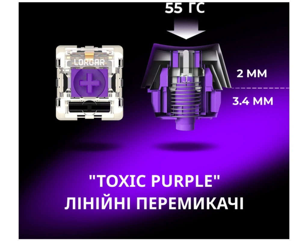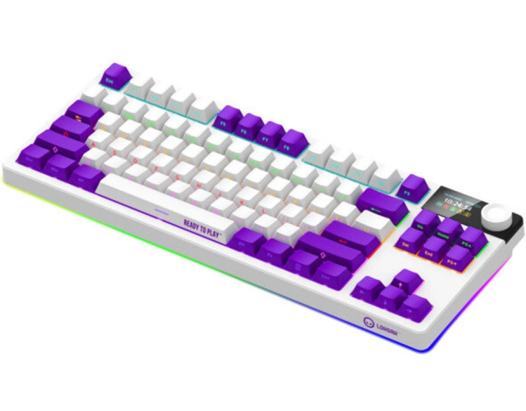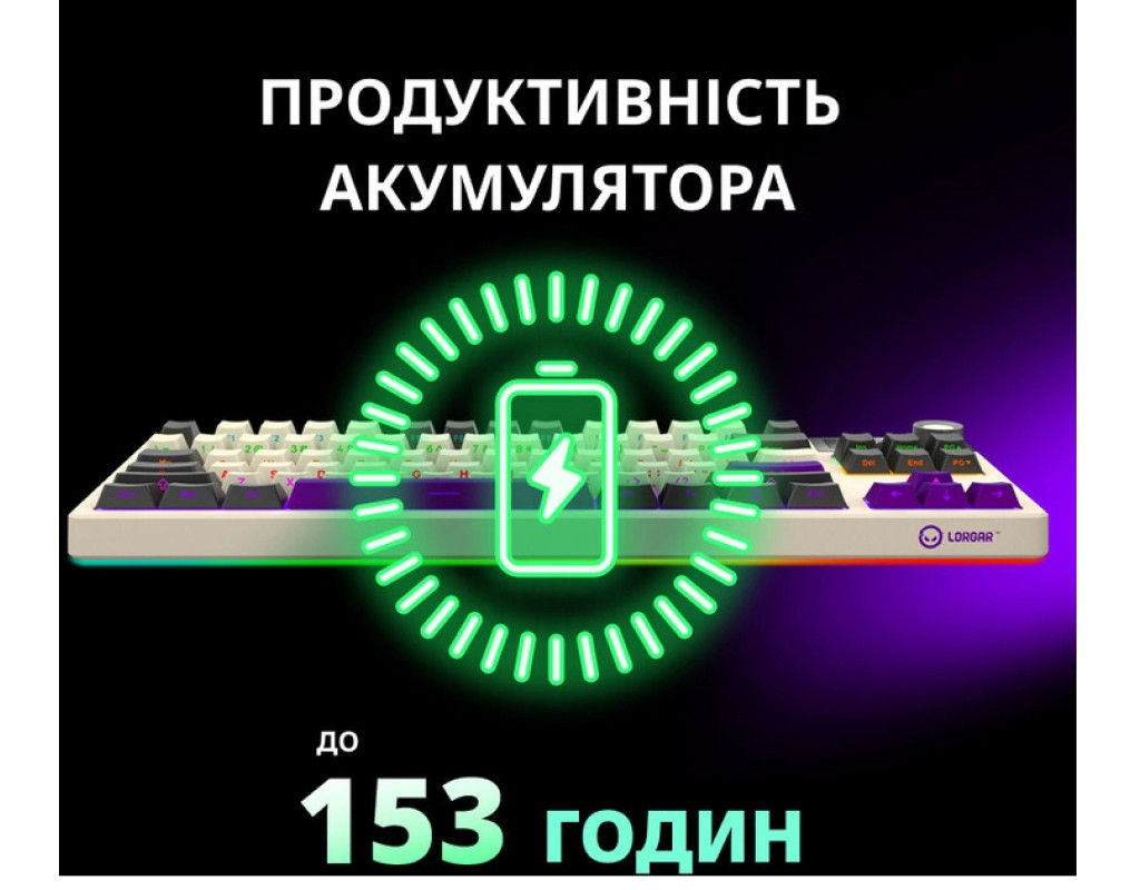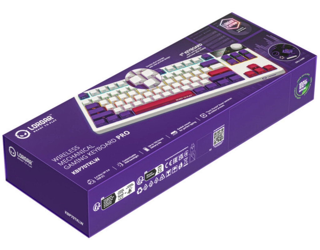 Lorgar KBP70TKLW — це високоякісна механічна клавіатура формату Tenkeyless, створена для геймерів і професіоналів, які цінують комфорт, надійність і стиль. Вона оснащена лінійними перемикачами LORGAR Toxic Purple з ресурсом у 50 мільйонів натискань, що забезпечують плавне та тихе введення. Завдяки гаскетному монтажу клавіші мають м’який хід і знижений рівень шуму. Клавіатура підтримує три режими підключення — Bluetooth 5.0, 2.4 ГГц і дротове USB-C, що дозволяє легко перемикатися між пристроями. Вбудований акумулятор ємністю 7200 мАг забезпечує до 153 годин автономної роботи. Ковпачки клавіш з PBT-пластику мають бокове гравіювання для довговічності. Адаптивний RGB-дисплей і смарт-регулятор додають функціональності та дозволяють налаштовувати підсвічування й мультимедіа. Гарячозмінні перемикачі дозволяють легко змінювати свічі без пайки. Це ідеальний вибір для тих, хто шукає баланс між компактністю, продуктивністю та естетикою. |