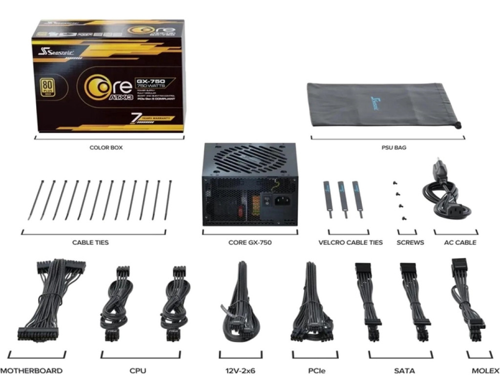 | Блок живлення Seasonic 750W BLACK (CORE GX-750-ATX31) — це ключовий компонент вашої комп'ютерної системи, що гарантує стабільне та безпечне живлення всіх компонентів. Потужністю 750 Вт, цей блок живлення перетворить електроенергію з мережі в необхідні для вашого ПК напруги, забезпечуючи рівномірний розподіл потужності між процесором, відеокартою, накопичувачами та іншими пристроями. Завдяки його модульній конструкції, яка передбачає повне відключення кабелів, ви отримаєте можливість оптимізувати внутрішньосистемний простір, покращуючи тим самим охолодження та загальний циркуляційний потік повітря. Цей блок живлення дотримується стандарту ATX, що робить його універсальним рішенням для більшості сучасних корпусів та материнських плат. Сертифікація 80 PLUS Gold підтверджує високу ефективність і економічність, яка досягає до 90% перетворення електроенергії, мінімізуючи тепловиділення та знижуючи споживання електроенергії. Seasonic CORE GX-750 оснащений активним модулем PFC (Power Factor Correction), що забезпечує підвищену стабільність та ефективність роботи при різних навантаженнях. Підтримка широкого спектру підключень, в тому числі для материнської плати 20+4 pin і процесора 4 pin, 8 pin, 8+4 pin, 8+8 pin, робить його надзвичайно гнучким у використанні. Щодо підключення додаткових компонентів, блок живлення пропонує три роз'єми для живлення відеокарт та інтерфейси 2x6+2 pin і 1x16 pin, що дозволяє легко впоратися з вимогливими графічними завданнями та забезпечити підтримку потужних графічних адаптерів. Шість роз'ємів SATA і три Peripheral роз'єми дозволять підключити всі необхідні накопичувачі та периферійні пристрої. Система охолодження представлена вентилятором діаметром 120 мм, що забезпечує тиху та ефективну роботу без надмірного нагрівання компонентів. Захисні функції включають комплексні механізми проти перевантаження (OPP), перевантаження по струму (OCP), підвищеної (OVP) та зниженої напруги (UVP), короткого замикання (SCP) та перегріву (OTP), що гарантовано зберігає вашу систему безпечною та стабільною. Розміри блоку — 150 x 140 x 86 мм — підкреслюють його компактність та сумісність з більшістю комп'ютерних корпусів, що робить Seasonic 750W BLACK ідеальним вибором для тих, хто шукає надійну і високоефективну систему живлення. Выбираючи цей блок живлення, ви інвестуєте у надійність, ефективність та безпеку з висококласним рішенням від Seasonic. |