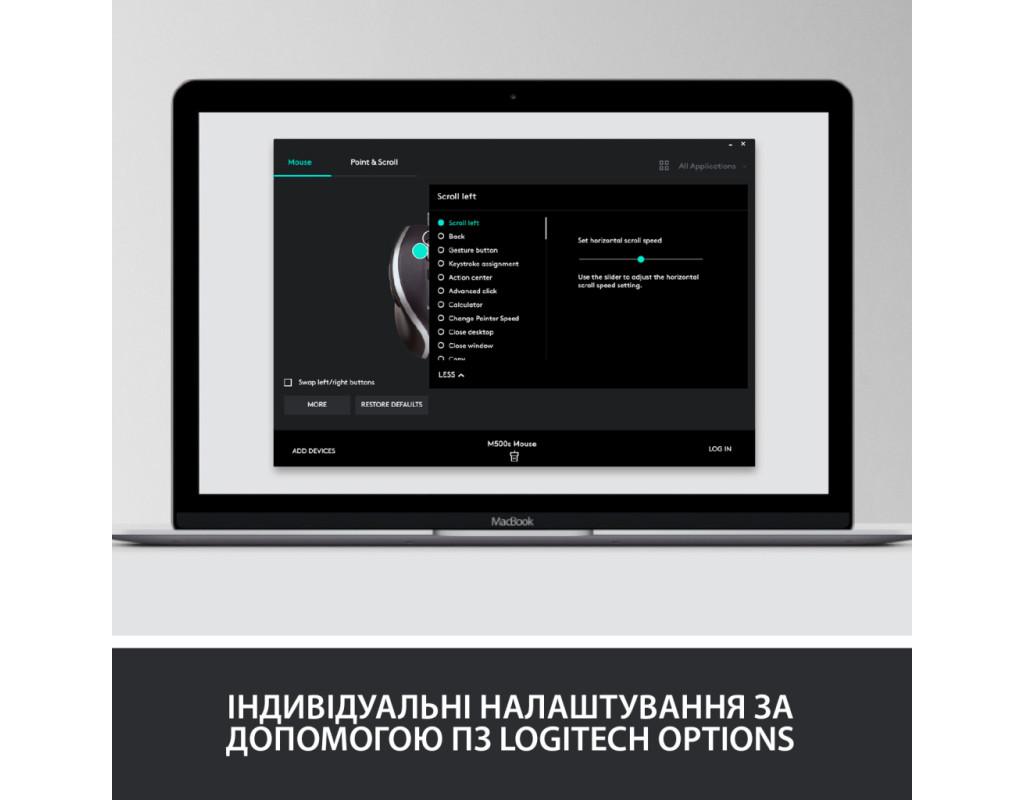 Провідна миша M500s ADVANCED Повнорозмірна ергономічна миша з коліщатком надшвидкої прокрутки і 7 налаштованим кнопками УДОСКОНАЛЕНА Провідна миша З мишею M500s ваша робота стане ефективною, як ніколи раніше, завдяки функції надшвидкої прокрутки і семи налаштованим кнопок для швидкого доступу. Повнорозмірна ергономічний корпус миші гарантує комфорт, точність, швидкість і ефективність роботи. Крім того, тепер миша дозволяє регулювати чутливість і працювати з ПО Logitech OPTIONS. ТОЧНА надшвидкої прокрутки Одне швидкісне коліщатко - два способи прокрутки. Проведіть по екрані великі документи і веб-сторінки за допомогою функції надшвидкої прокрутки. Або скористайтеся режимом покрокової прокрутки, щоб отримати необхідну точність переміщення по електронних таблиць, фотоальбомів і списками відтворення. Повнорозмірний ергономічні форми Повнорозмірна миша з ідеальною конструкцією стане незамінним помічником. Завдяки бічним вставкам з м'якої гуми і ергономічній формі мишею зручно управляти, використовуючи пристрій як для щоденної роботи, так і для ігор - результат буде незмінно чудовим. 7 КНОПОК ДЛЯ ЧАСТО ВИКОРИСТОВУЮТЬСЯ КОМАНД Покращена навігація і висока продуктивність завдяки семи налаштованим кнопок. Налаштуйте кнопки за допомогою ПО Logitech OPTIONS, щоб отримати доступ до спеціальних функцій. Використовуйте їх для миттєвого копіювання і вставки, переміщення вперед і назад, а також для виконання будь-яких завдань, які допоможуть спростити робочий процес. ШВИДКЕ І точне управління курсором Задайте потрібний рівень чутливості в межах 400-4000 точок на дюйм, щоб забезпечити більш точне і швидке переміщення курсора практично на будь-якій поверхні. Виберіть за допомогою ПО Logitech OPTIONS оптимальну швидкість і точність відповідно до розміру екрана, дозволом і типом виконуваного завдання. ВСТАНОВЛЕННЯ ТЕХНОЛОГІЇ PLUG-AND-PLAY Ваша миша повністю готова до роботи. Підключіть її до USB-порту - і все. |