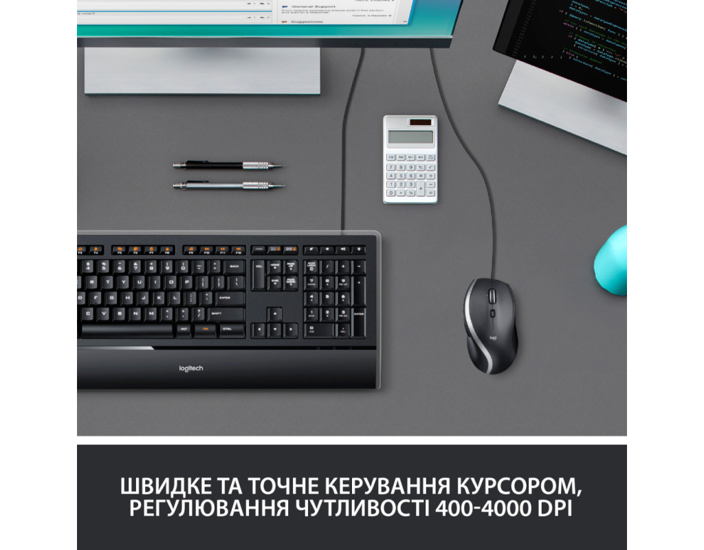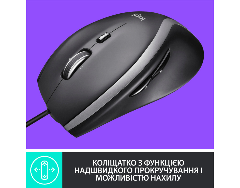 | Мишка Logitech M500s Advanced (910-005784) - еталон якості і зручності в світі комп'ютерної периферії. Ця повнорозмірна миша з оригінальним дизайном ідеально підходить для використання у професійній діяльності та для домашнього використання, пропонуючи максимально комфортну роботу завдяки своїй ергономічній формі. Підключення здійснюється за допомогою надійного дротового інтерфейсу через порт USB, що забезпечує стабільний зв'язок без жодних затримок. Миша оснащена лазерним датчиком з регульованою роздільною здатністю до 4000 dpi, що гарантує точність та швидкість переміщення курсора на будь-якій поверхні. Це дозволяє легко налаштувати сенситивність відповідно до потреб користувача та вимог конкретних задач. Однією з унікальних особливостей M500s є надшвидка прокрутка. Інноваційне коліщатко прокрутки дозволяє миттєво переглянути великі документи та веб-сторінки. Ви можете обирати між безперервною або покроковою прокруткою в залежності від ситуації, що забезпечує максимальний контроль та точність. Ваша продуктивність досягне нових висот завдяки сімом налаштованим кнопкам, які можна конфігурувати для виконання певних функцій через ПО Logitech OPTIONS. Це дозволяє персоналізувати ваші робочі процеси, надаючи швидкий доступ до найчастіше використовуваних команд, наприклад, копіювання та вставки тексту, навігації між веб-сторінками та багато іншого. Довжина кабеля становить 1.8 метра, що створює додаткову свободу рухів без необхідності триматися близько до комп'ютера. Миша виконана в стильному чорному кольорі з м'якими гумовими бічними вставками, які посилюють відчуття зручності навіть під час тривалого використання. Завдяки технології Plug-and-Play, миша готова до роботи одразу після підключення до комп'ютера. Немає необхідності встановлювати драйвери або витрачати час на налаштування - просто підключіть та починайте працювати. Logitech M500s Advanced - це невід'ємний помічник для тих, хто цінує якість, ефективність та інноваційні рішення у своїх гаджетах. |