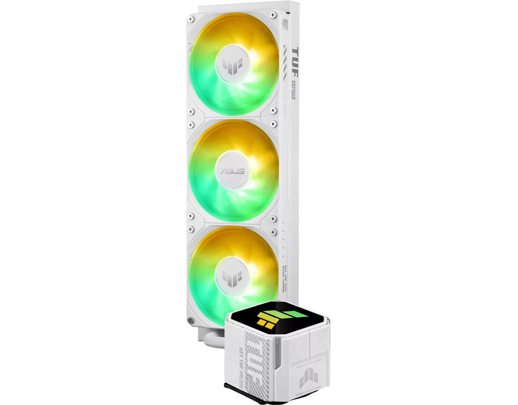 | TUF Gaming LC III 360 ARGB White Edition – необслуговувана рідинна система охолодження процесора з трьома попередньо встановленими вентиляторами для створення високого повітряного потоку й статичного тиску та високоефективною помпою, що забезпечує оптимальну робочу температуру процесора.