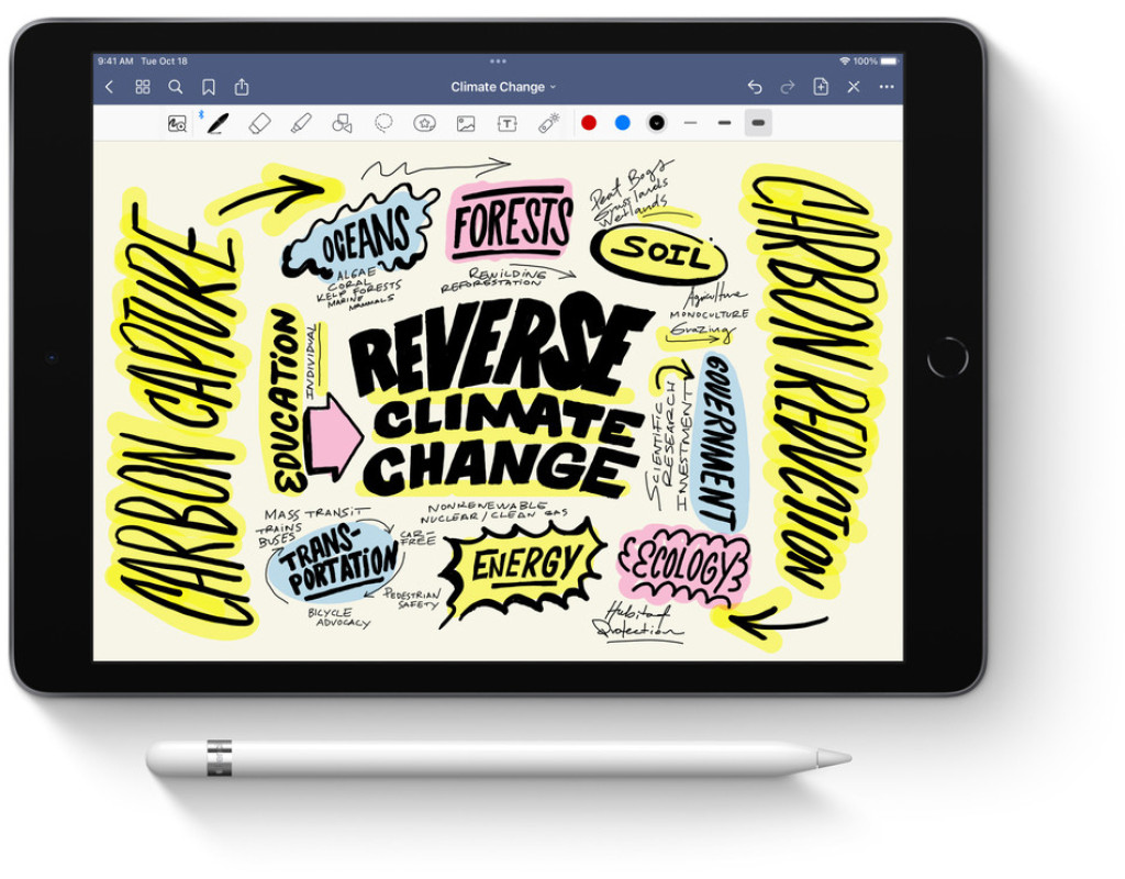Apple Pencil розширює можливості iPad і відкриває нові горизонти для творчості. Він реагує на силу натискання та нахил, тож ви зможете змінювати товщину ліній, штрихувати та створювати безліч інших художніх ефектів, наче це звичайний олівець, який малює з точністю до пікселя.