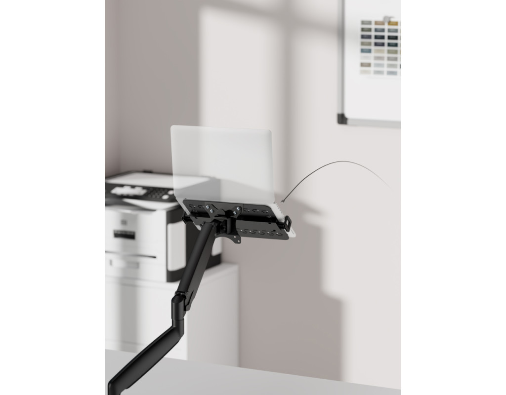 Універсальний тримач для ноутбука LH340 – ідеальне доповнення до кріплень для монітора, що дозволяє організувати робочий простір найзручнішим чином. Завдяки продуманій конструкції, тримач забезпечує ергономічне розташування ноутбука на комфортному для роботи рівні, що сприяє зменшенню навантаження на шию та спину. Вертикально регульовані затискачі дають змогу залишити всі бічні порти відкритими для швидкого підключення зовнішніх пристроїв, таких як флешки, миші, клавіатури чи зарядні пристрої. Надійні розсувні механізми легко адаптуються до ноутбуків з діагоналлю 12–18 дюймів і вагою до 9 кг, гарантуючи міцну фіксацію навіть під час активного користування. Вбудовані захисні прокладки оберігають корпус пристрою від подряпин і потертостей, а спеціальний стопор ефективно запобігає випадковому зісковзуванню ноутбука. Міцна металева конструкція забезпечує довговічність і стабільність у щоденному використанні. Тримач повністю сумісний з популярними стандартами кріплень VESA 75x75 та 100x100, що дозволяє легко інтегрувати його з більшістю сучасних моніторних кріплень та сучасних офісних систем. LH340 – відмінний вибір для вдосконалення гармонії та функціональності вашого робочого місця як в офісі, так і вдома. |