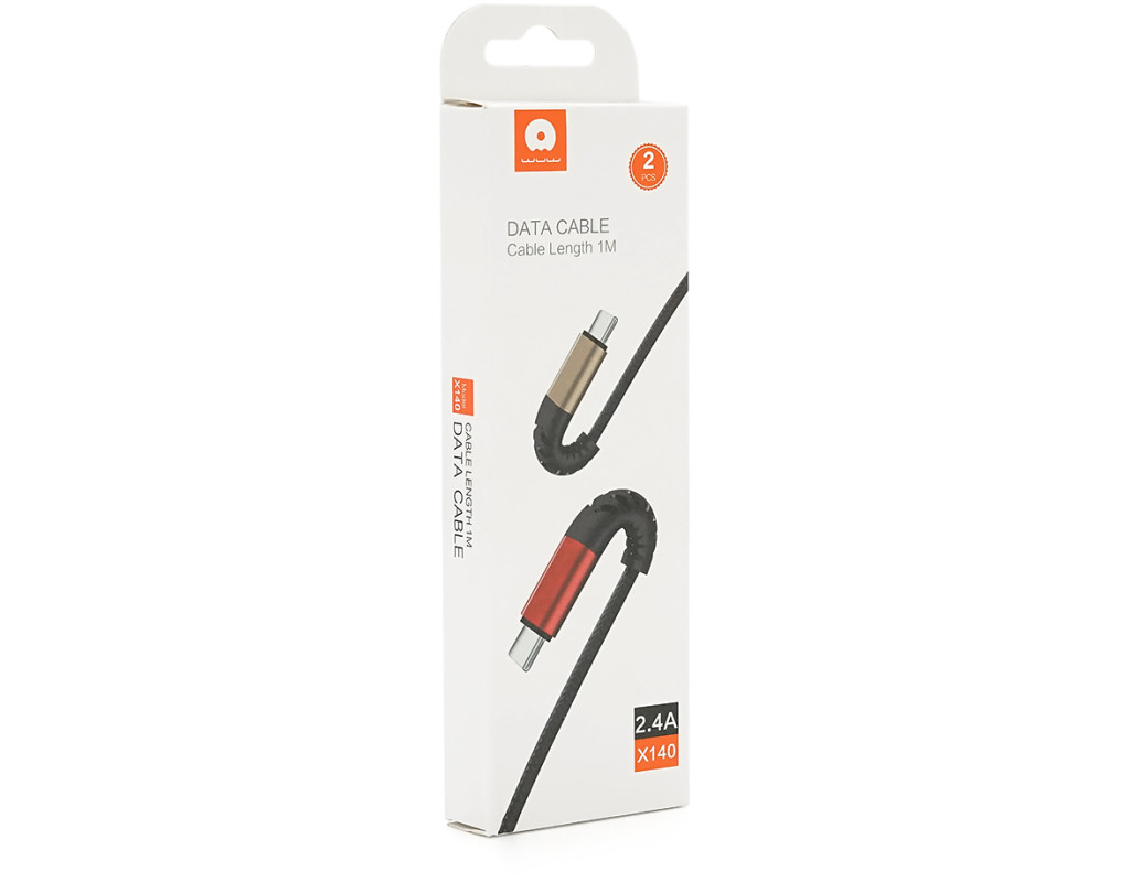 Кабель WUW X140, Type-C-USB, 2.4A, Black, довжина 1м, 2шт в упаковці, ціна за упаковку, BOX