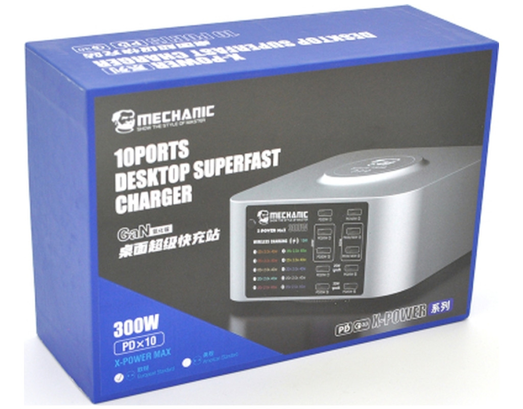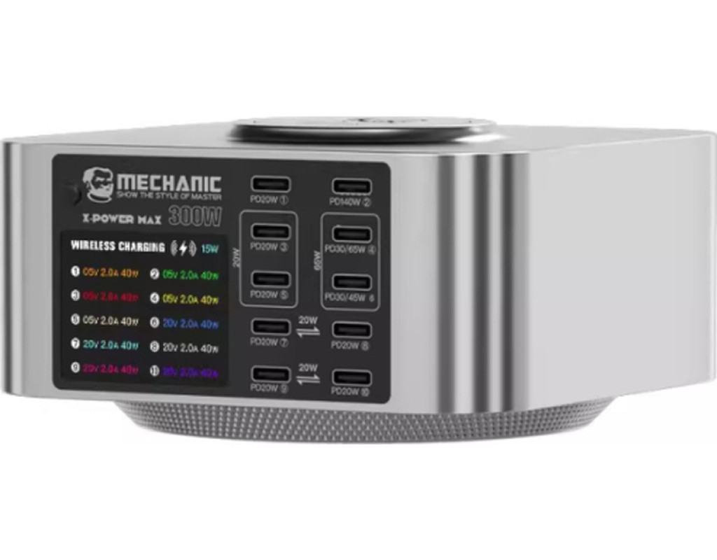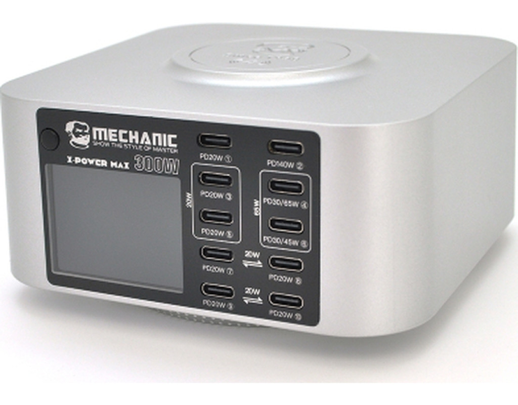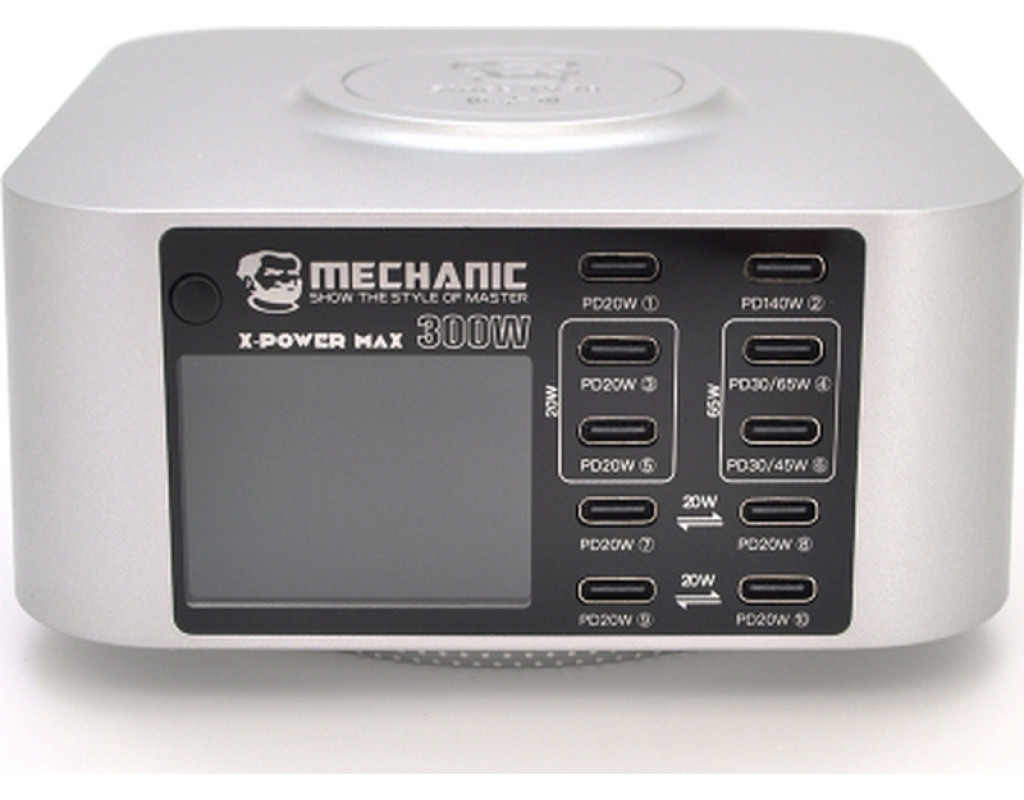 | Зарядний пристрій MECHANIC 10xUSB-C PD + Wireless Charging 15W LED indication 300W black (X-Power Max) є універсальним центром живлення для Ваших пристроїв. Цей док-станція з інтеграцією передових технологій поєднує в собі потужність та безпеку, надаючи змогу заряджати одночасно до 11 пристроїв завдяки 10 USB Type-C портам підтримки Power Delivery та бездротової зарядки за стандартом Qi. Завдяки максимальній вихідній потужності у 300 Вт, цей пристрій легко впорається із заряджанням Ваших смартфонів, планшетів, навушників, а також ноутбуків, забезпечуючи сумісність із MacBook, Ultrabooks та іншими. Більш того, цифрова індикація показує поточний рівень потужності та статус зарядки, додаючи зручності у використанні. Безпека на першому місці: зарядна станція оснащена системою захисту від перегріву, перевантаження та короткого замикання. Її корпус, виготовлений з вогнестійкого PC+ABS пластику, стійкий до падінь і перегрівань, що робить цей пристрій надійним супутником у подорожах. Серед особливих властивостей — технологія Chip 5.0, яка забезпечує низьке енергоспоживання та ККД до 90%. Це означає не лише швидку, а й ефективну зарядку Ваших девайсів. А автоматичне регулювання потужності кожного порту робить цей пристрій екологічно безпечним. Док-станція MECHANIC X-Power Max стане незамінною у вашому домі чи офісі, водночас замінюючи безліч зарядних пристроїв. У комплектації ви знайдете зарядну станцію, кабель живлення та інструкцію. Для оптимальної роботи рекомендується використовувати оригінальні кабелі. Цей пристрій не підтримує заряджання ноутбуків із споживанням понад 140 Вт, але пропонує сучасні рішення для більшості інших гаджетів. |