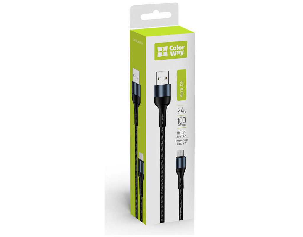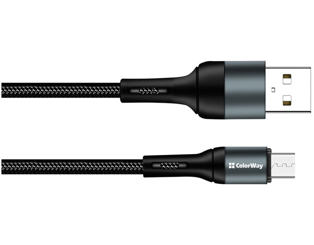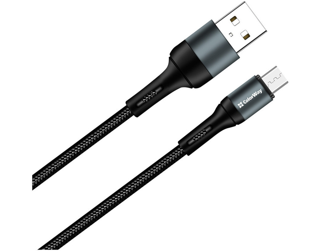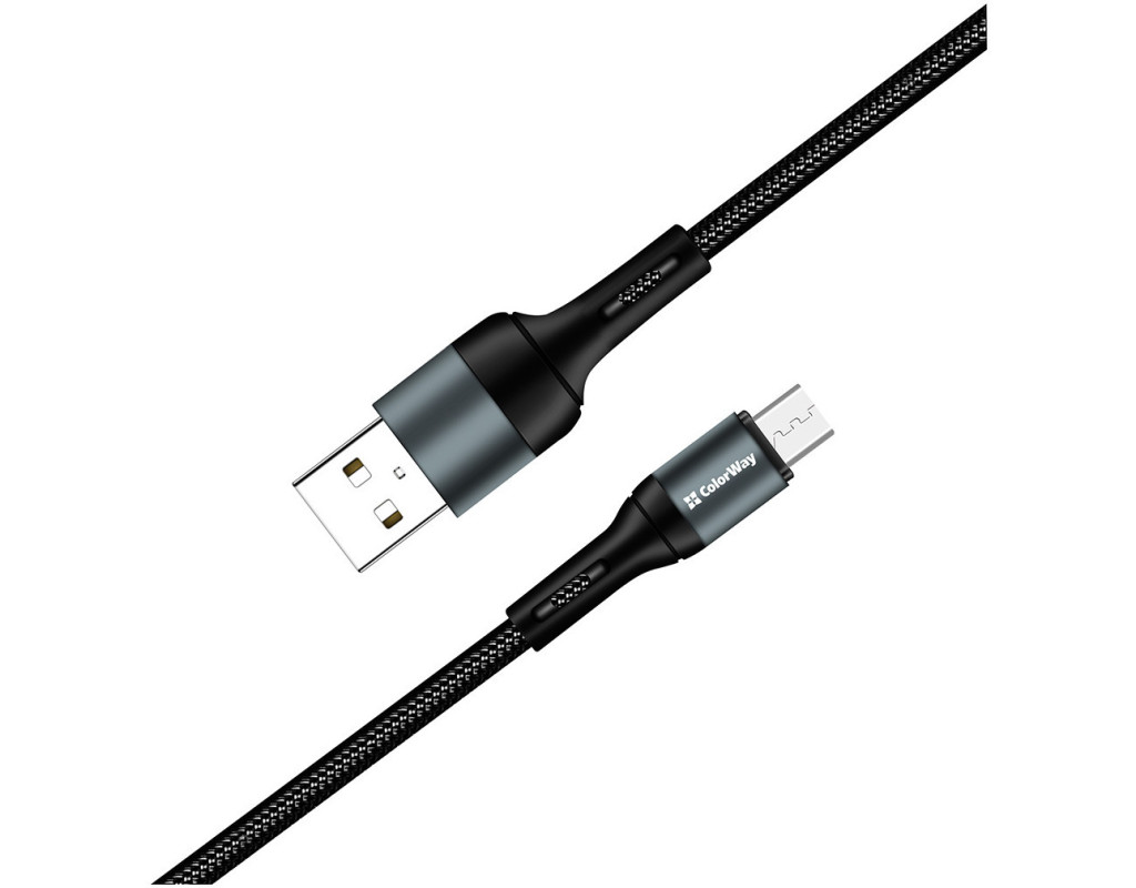 Дата кабель USB 2.0 AM to Micro 5P 1.0m nylon black ColorWay (CW-CBUM045-BK)