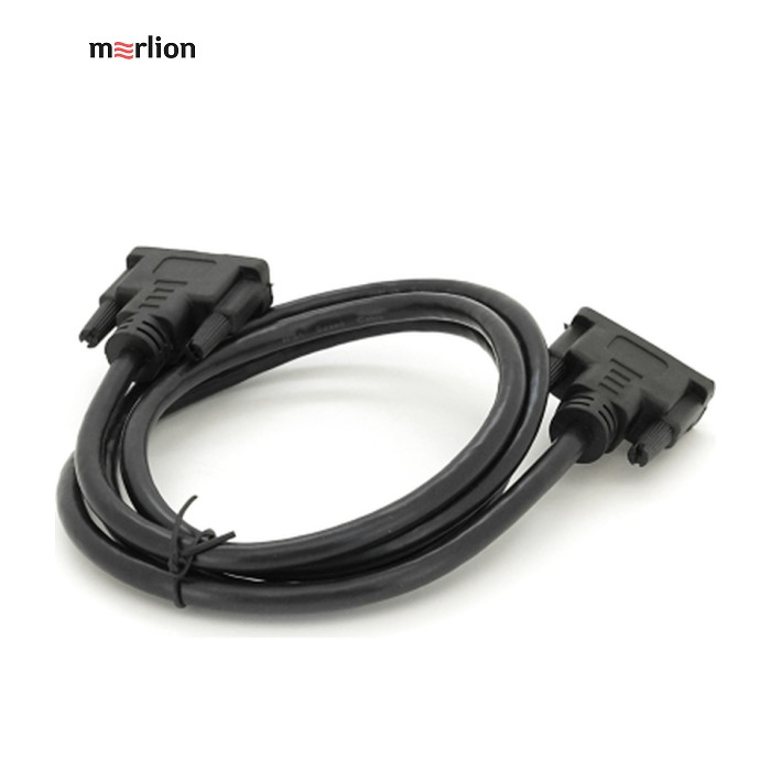 | Мультимедійний кабель DVI-D (24+1) male to male довжиною 1,5 м, чорного кольору, призначений для передачі цифрового відеосигналу між пристроями з DVI-інтерфейсом (наприклад, ПК та монітор). Бренд — Merlion. |