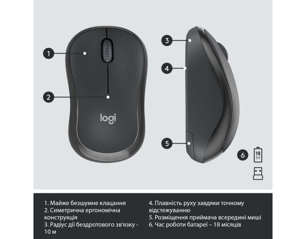 Надзвичайно стабільне та надійне бездротове підключення на частоті 2.4 ГГц з радіусом дії 10 м забезпечує стійкий прийом сигналу та відсутність затримок. USB-приймач суттєво заощаджує місце на робочому столі: він настільки мініатюрний, що його можна не відключати від комп'ютера.