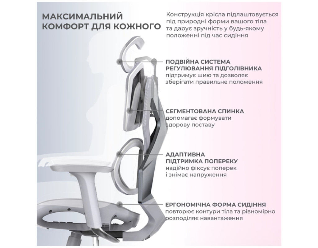 | Ергономічне крісло Sihoo X5C призначене для максимального комфорту під час тривалих ігрових або робочих сесій. Його повністю сітчасте покриття забезпечує ефективну вентиляцію та запобігає перегріву. Подвійний шарнірний підголовник регулюється по висоті та куту, знімаючи напругу з шиї. Спинка має три зони підтримки та синхронний механізм нахилу з фіксацією у трьох положеннях – 98°, 112° та 125°. 3D-підлокітники регулюються по висоті, вперед/назад та в сторони, синхронізуючись із нахилом спинки. Об'ємна C-подібна поперекова підтримка може регулюватися по висоті в діапазоні 5 см і забезпечує індивідуальне налаштування положення. Міцна нейлонова база та газліфт 3 класу гарантують надійність та безпеку. Прогумовані поліуретанові колеса дозволяють безшумно пересуватися по будь-якій підлозі. Механізм багатопозиційного нахилу дозволяє працювати, відпочивати та грати з однаковим комфортом. Стильний сучасний дизайн гармонійно поєднує елементи ігрової та офісної естетики. Це крісло – оптимальний вибір для геймерів та тих, хто цінує здоров'я спини та комфорт під час сидіння. |