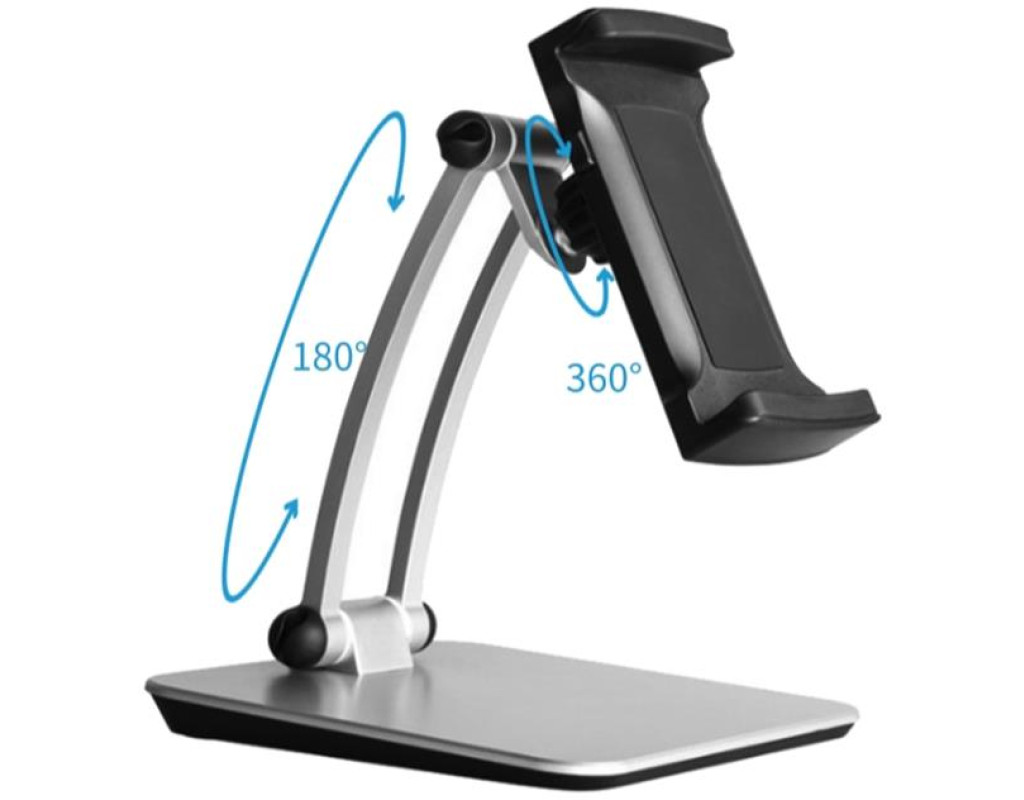 | Універсальний гнучкий настільний тримач для планшета з поворотом на 360°, легко настроюється на найзручніший кут огляду, який полегшить вам життя.