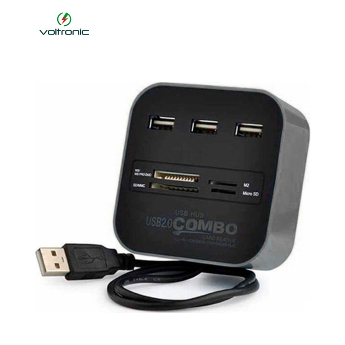 Універсальний хаб-кардрідер CUB3 з трьома портами та чорним корпусом у блістерній упаковці. |