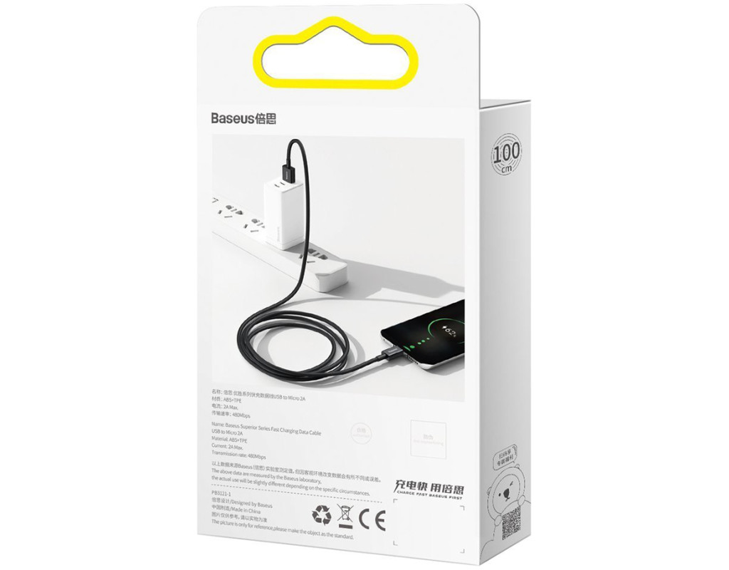 Дата кабель USB 2.0 AM to Micro 5P 2.0m Superior Fast Charging 2A black Baseus (CAMYS-A01)