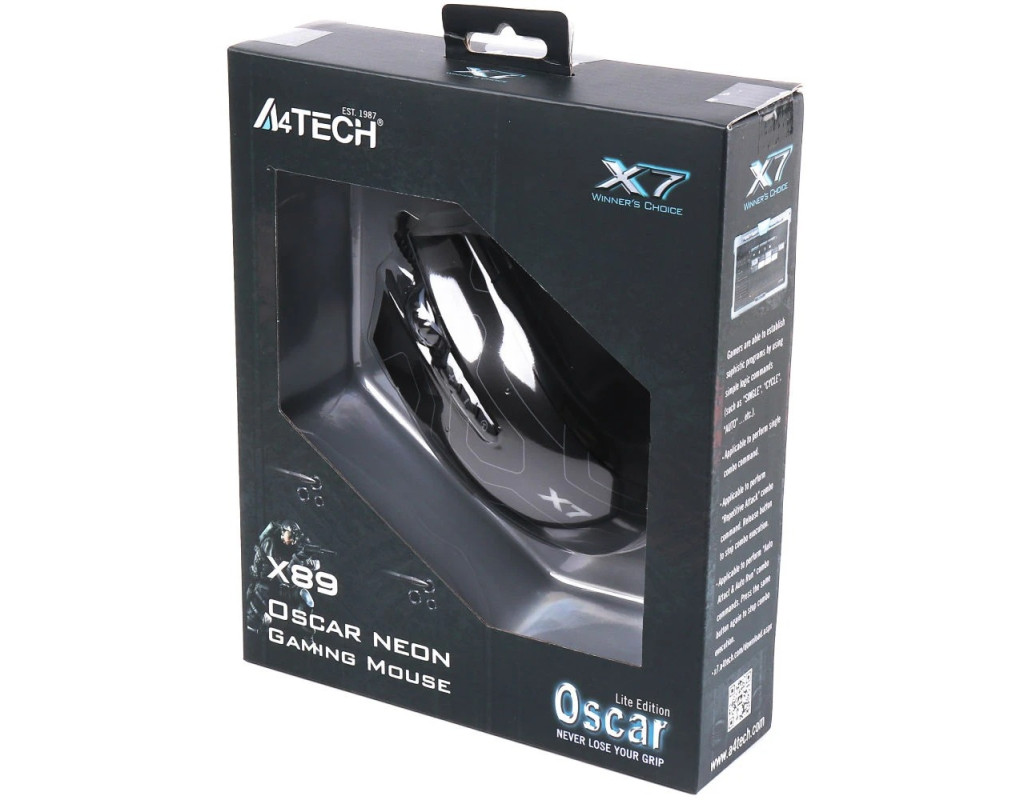 | A4 Tech X89 - зручна і практична ігрова мишка з неоновим підсвічуванням. Оптичний датчик PixArt PAW3212 зі змінною чутливістю до 2400 DPI забезпечує виняткову точність. Ергономічна форма миші X89 подарує максимальний комфорт на довгі години ігрових баталій. |