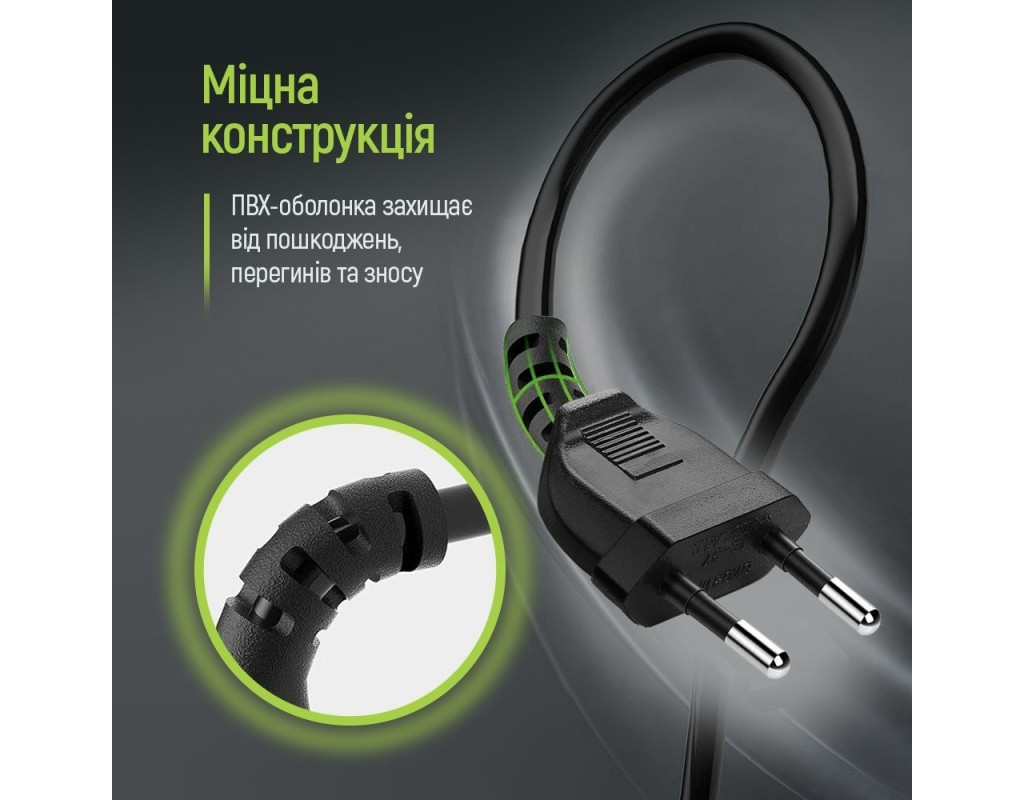 | Кабель живлення ColorWay C7 — компактне рішення для підключення техніки з двоконтактним роз’ємом C7 (IEC 60320) до електромережі. Ідеально підходить для ноутбуків, ігрових приставок, зарядних станцій, аудіотехніки та відеотехніки, а також інших пристроїв, що не потребують заземлення.