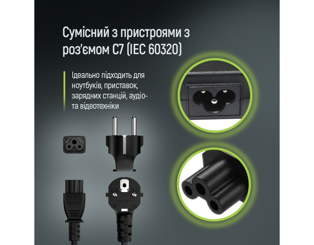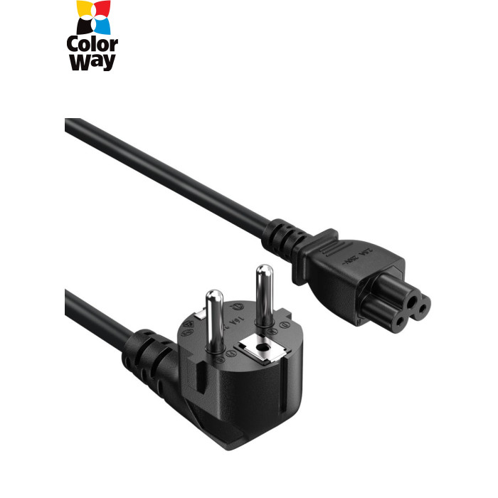 | Надійний кабель живлення ColorWay призначений для підключення ноутбуків, зарядних пристроїв та іншої техніки з роз’ємом C5 (типу "Міккі Маус") до стандартних європейських розеток. Підходить для використання в побутових та офісних умовах, забезпечуючи стабільне живлення пристроїв.