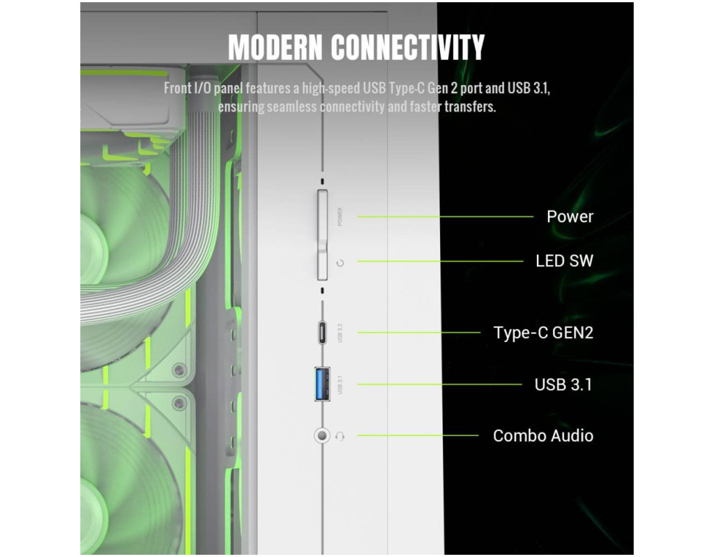 | Корпус для ПК Gamemax Claw 360 WH – це нове слово у світі геймерських корпусів. Він поєднує в собі естетику сучасного дизайну, передові технології охолодження та безпрецедентну сумісність з найновішими компонентами. Фірмовий дизайн передньої панелі у вигляді "левового кігтя" є не лише стильним рішенням, але й функціональним елементом, задачі якого полягають у забезпеченні оптимального повітряного потоку. Жорстка конструкція корпусу забезпечує надійну підтримку для вашої найвибагливішої геймерської збірки. Його типорозмір Miditower і можливість встановлення материнських плат Mini-ITX та Micro-ATX роблять цей корпус ідеальним вибором для геймерів, які цінують гнучкість і універсальність. Внутрішня конфігурація передбачає два відсіки 3.5" та два відсіки 2.5", що дозволяє розширювати пам’ять без компромісів. Відмінне охолодження – це одна з головних переваг Gamemax Claw 360 WH. Він оснащений чотирма попередньо встановленими вентиляторами 120 мм, які разом з вентиляційними отворами на бокових стінках дають змогу створити потужний акустичний потік для ефективного охолодження. Це особливо важливо для тих, хто вимагає максимальної продуктивності від свого обладнання. Крім того, корпус підтримує встановлення додаткових вентиляторів у різних конфігураціях, включно з верхньою, нижньою та бічною частинами, дозволяючи налаштувати систему охолодження під ваші потреби. Окремо варто відзначити можливість вертикального встановлення відеокарти, що не тільки покращує її охолодження, але й відкриває нові дизайнерські можливості для креативних рішень у збірці. За потреби можна використовувати довгі відеокарти до 420 мм, що готує Claw 360 WH до підтримки новітніх карт, зокрема NVIDIA 50 Series. Зовнішні роз'єми, такі як USB 3.1, аудіопорти та мікрофон, надають швидкий доступ до сучасних пристроїв і додаткової периферії, полегшуючи повсякденне використання. Сучасна панель введення-виведення разом із потенціалом для рідинного охолодження в задній та верхній частинах корпусу робить цей продукт універсальним рішенням для будь-якого типу геймінгу. Корпус підтримує блоки живлення ATX з нижнім розташуванням довжиною до 240 мм, що забезпечує зручність в обслуговуванні кабель-менеджменту і знижує рівень шуму. Пиловий фільтр захищає внутрішні компоненти від небажаних забруднень, подовжуючи час експлуатації вашої системи. Gamemax Claw 360 WH виконаний у стильному білому кольорі, який підкреслює його сучасний і технологічний вигляд. Цей корпус, завдяки своїй вазі в 5.8 кг, є досить легким для перенесення, залишаючи місце для моделей, що забезпечують високу якість та стабільність під час гри. Це ідеальне рішення для геймерів, які бажають отримати максимум від своєї системи. |