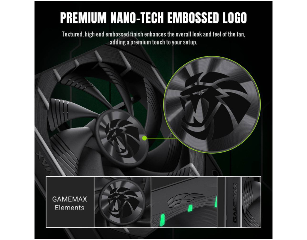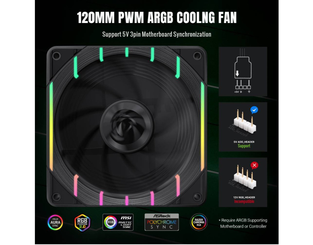 Приголомшливе ARGB-підсвічування: 24 ARGB-світлодіоди створюють унікальний ефект сліду кігтя GameMax. Підтримує синхронізоване регулювання підсвічування з материнською платою, додаючи естетики кіберспорту до вашого корпусу ПК.