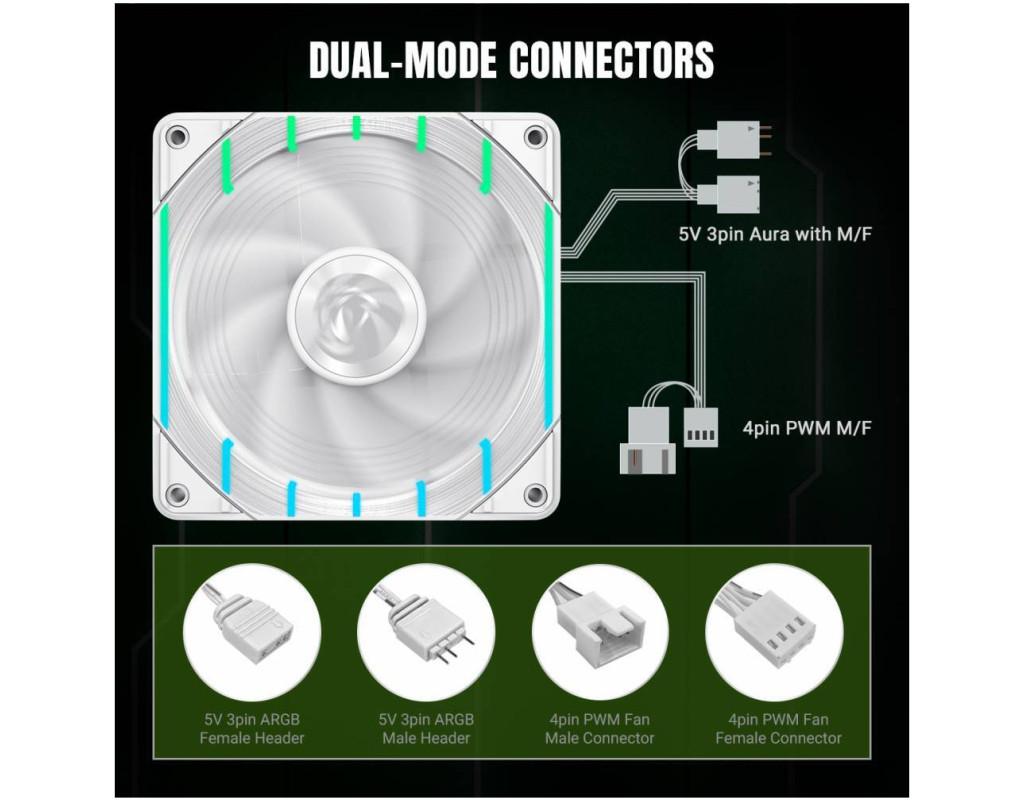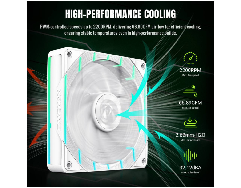 Приголомшливе ARGB-підсвічування: 24 ARGB-світлодіоди створюють унікальний ефект сліду кігтя GameMax. Підтримує синхронізоване регулювання підсвічування з материнською платою, додаючи естетики кіберспорту до вашого корпусу ПК.