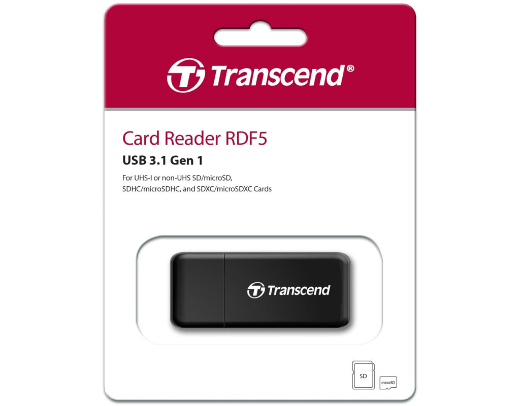 | Картрідер RDF5Завдяки підтримці карт пам'яті формату SDHC/SDXC і microSDHC/SDXC, кард-рідер RDF5 у поєднанні з високошвидкісним інтерфейсом USB 3.1 Gen 1 демонструє найвищу швидкість передачі. будь-якої ситуації.Універсальний кард-рідер для карт пам'яті SD та microSDЗавдяки наявності двох слотів для карт пам'яті SD і microSD, RDF5 вирішить більшість ваших повсякденних завдань передачі даних між вашими камерами, телефонами і ПК.Примітка: кард-рідер не підтримує одночасне встановлення карт пам'яті SD та microSDСтандартний порт USB Type-AКард-рідер Transcend RDF5 оснащений стандартним роз'ємом USB Type-A. Просто підключіть його до USB-порту комп'ютера та насолоджуйтесь швидкою передачею даних!Вищі швидкості передачі даних, вища ефективністьЗавдяки інтерфейсу USB 3.1 Gen 1, RDF5 демонструє найвищу швидкість передачі даних, яка набагато швидше, ніж інтерфейс USB 2.0. RDF5 не тільки з легкістю передає зображення та відео високої роздільної здатності, але також має світлодіодний індикатор, який сигналізує про підключення карти та передачі даних.Швидкий та компактнийКарт-рідер RDF5 досить компактний, щоб поміститися в кишеню чи портфель. Оскільки його легко переносити, ви можете передавати свої найважливіші файли будь-де і будь-коли. |