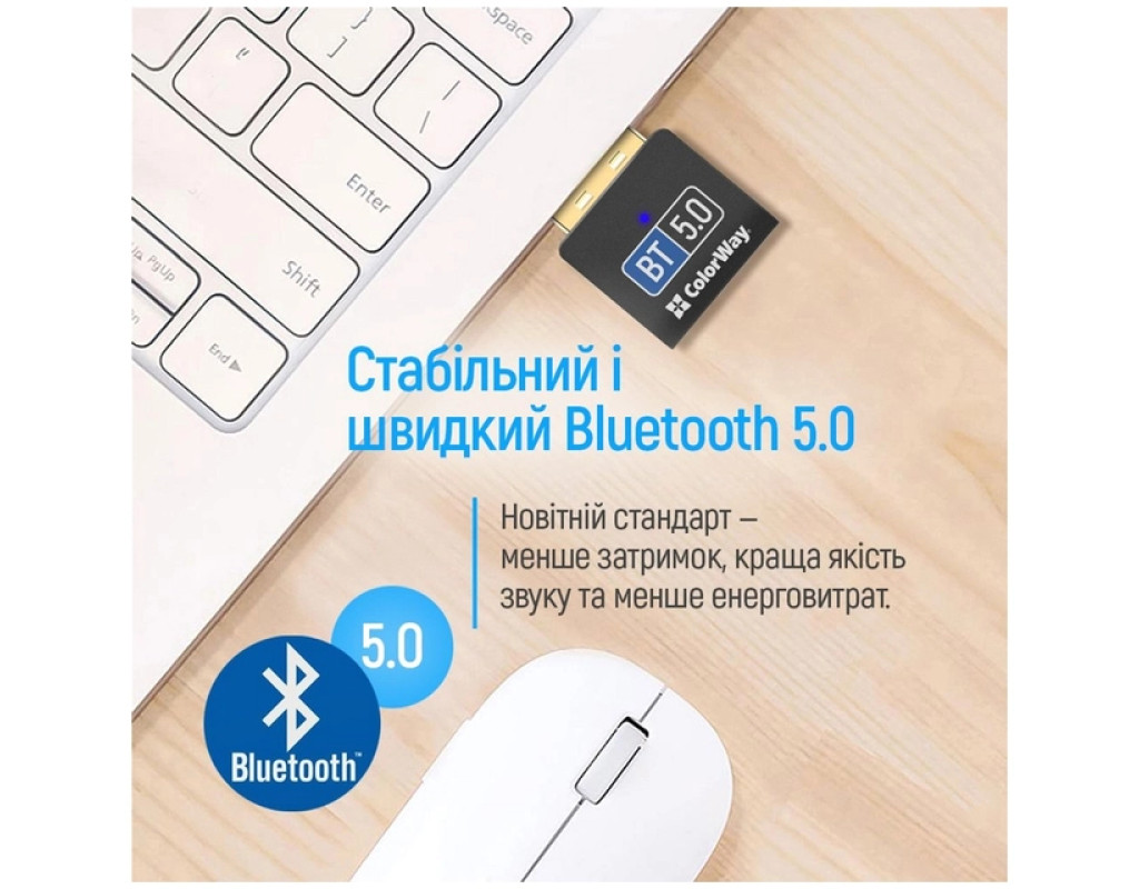 | Адаптер ColorWay Bluetooth 5.0 USB - Перетворіть свій комп'ютер або ноутбук на справжній центр бездротового зв’язку з адаптером ColorWay Bluetooth 5.0. Підключайте бездротові навушники, колонки, миші, клавіатури та інші Bluetooth-пристрої всього за кілька секунд. Особливості: