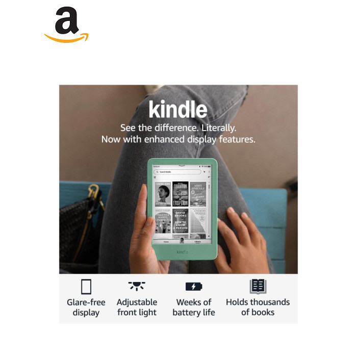 Компактний та легкий дизайн: Це найменший Kindle, який тепер має яскраве підсвічування та покращену контрастність для зручного читання. Комфортне читання при будь-якому освітленні: 6-дюймовий дисплей без відблисків з регульованим підсвічуванням, яке стало на 25% яскравішим на максимальних налаштуваннях, а також можливість включення темного режиму. Без відволікань: Відсутність повідомлень від соціальних мереж та електронної пошти дозволяє зосередитись на книзі. Тривала автономність: Одна зарядка через USB-C забезпечує 6 тижнів читання. Великий обсяг пам’яті: 16 ГБ вбудованої пам’яті дозволяють зберігати тисячі книг, що робить Kindle ідеальним для подорожей. Бібліотека без кордонів: З підпискою Kindle Unlimited ви отримуєте доступ до більш ніж 4 мільйонів книг та тисяч аудіокниг. Екологічність: Kindle виготовлений із 75% переробленого пластику та 90% переробленого магнію, що робить його більш екологічним, а упаковка повністю придатна для вторинної переробки. Зручне читання у будь-який час: Регулюйте підсвічування або активуйте темний режим для комфортного читання вдень чи вночі. Тривалий час між заряджаннями: Насолоджуйтесь читанням без частих заряджень – пристрій працює до 6 тижнів від однієї зарядки. Широкий вибір контенту: Kindle Store відкриває доступ до більш ніж 15 мільйонів книг у всьому світі, включаючи ексклюзивні видання. |