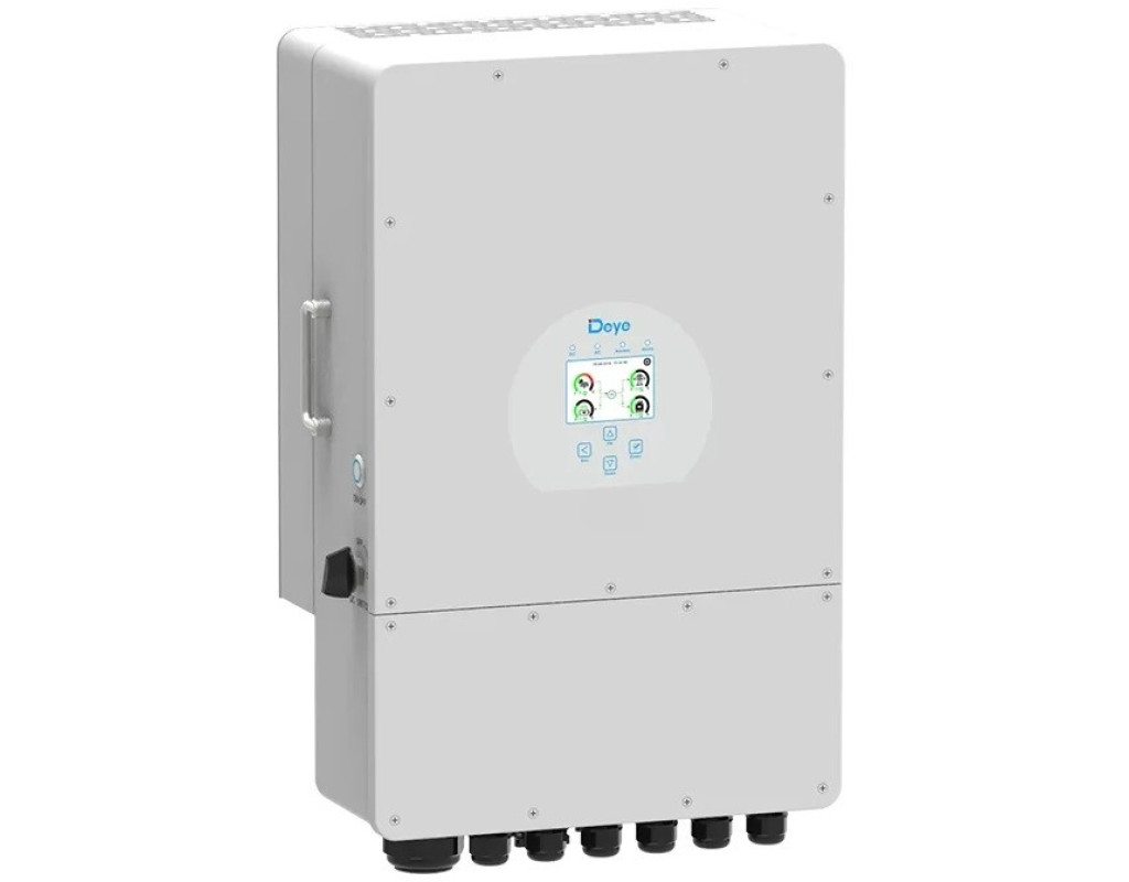 | Гібридний інвертор Deye SUN 12K-SG04LP3-EU – це провідний високоякісний продукт від китайського виробника Deye. Компанія Deye Energy, вважається одним з кращих інверторів гібридного типу на ринку, вона може працює в автономному від акумуляторів, може скидувати надлишки в мережу, що дозволяє підключати вашу станцію до державної програми та швидше окупити ваші вкладення в сонячну електростанцію. Список корисних відео по налаштуванню інвертора: Швидке налаштування інвертора - відео тут; Зменшення пікових навантажень - відео тут; Робота інвертора в комплексі з генератором - відео тут; Налаштування системи моніторингу - відео тут; Паралельно робота до 16 інверторів - відео тут. Інвертор Deye SUN-12K-SG04LP3-EU має ряд переваг в порівнянні з конкурентами, це стосується і технічних характеристик, і програмних і функціональних. Інвертор оснащений двома MPPT трекерами. Тому до інвертора можна підключати два окремі масиви сонячних панелей (східний та західний скат даху будинку чи монтаж частини панелей на даху, а частини на землі). Струм MPPT від панелей - 26А + 13А, а діапазон MPPT - від 200~650 В. Робота в одно та трьохфазній системі в режимі паралельного задання. Інвертор може працювати в режимі паралельного з'єднання до 16 шт., 3 шт. на кожну фазу в трьох фазній мережі. Гібридний режим роботи. Інвертор сумісний з акумуляторами Li-ion, LFP та Lead Acid (свинцево-кислотного типу) типу, тому система на основі такого інвертора та акумулятора зможе працювати впродовж тривалого терміну без заміни АКБ. Ще одною перевагою гібридного режиму роботи є можливість продавати надлишки згідно "зеленого" тарифу. Також акумулятор сумісний в зі свинцево-кислотними акумуляторами. Інтелектуальна система захисту вберігає інвертор від критичних поломок, які можуть виникнути при перевантажені, перенапрузі чи струму короткого замикання. Крім цього, інвертор моментально реагує на дугові пробої, що вберігає станцію від загорання. Контроль генерації. Інвертор сумісний з інтелектуальним лічильником, який дозволяє обмежувати рівень генерації станції задля запобігання перетіканню надлишків в мережу (актуально тоді, коли немає змоги підключити "зелений" тариф) Гарантія. Даний інвертор має 5 річну офіційну гарантію від виробника. Дана модель відповідає стандарту захисту IP65. Температурний діапазон роботи - від -40~60°C. Гарантія на Deye SUN-12K-SG04LP3-EU складає 5 років, що ще раз підтверджує високу якість товару.