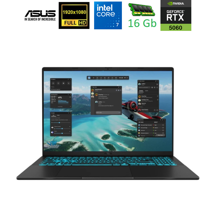 Зміна гри Розкрийте свою приховану креативність і ігрову майстерність з ASUS V16 — потужним портативним супутником для дозвілля. Оснащений процесором Intel Core (Series 2) та відеокартою NVIDIA GeForce RTX 50 Series Laptop GPU, цей ноутбук легко справляється як з творчими завданнями, так і з іграми. Його вдосконалена система охолодження гарантує стабільну роботу на максимумі можливостей. Блискавично швидка оперативна пам’ять і SSD накопичувач скорочують час завантаження, дозволяючи вам творити та перемагати всюди, де приходить натхнення.
