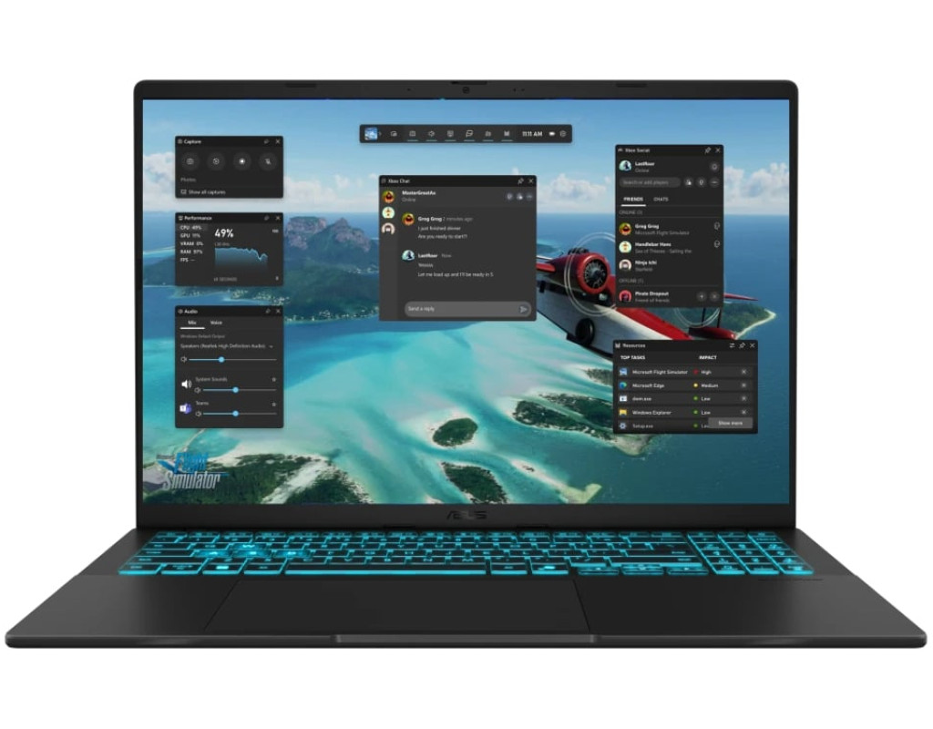 Розумні дзвінки, чітке зображення Контролюйте онлайн-зустрічі завдяки інноваційній камері та технології ASUS AI Noise-Canceling, що використовує нові алгоритми для покращення якості конференц-зв’язку.
