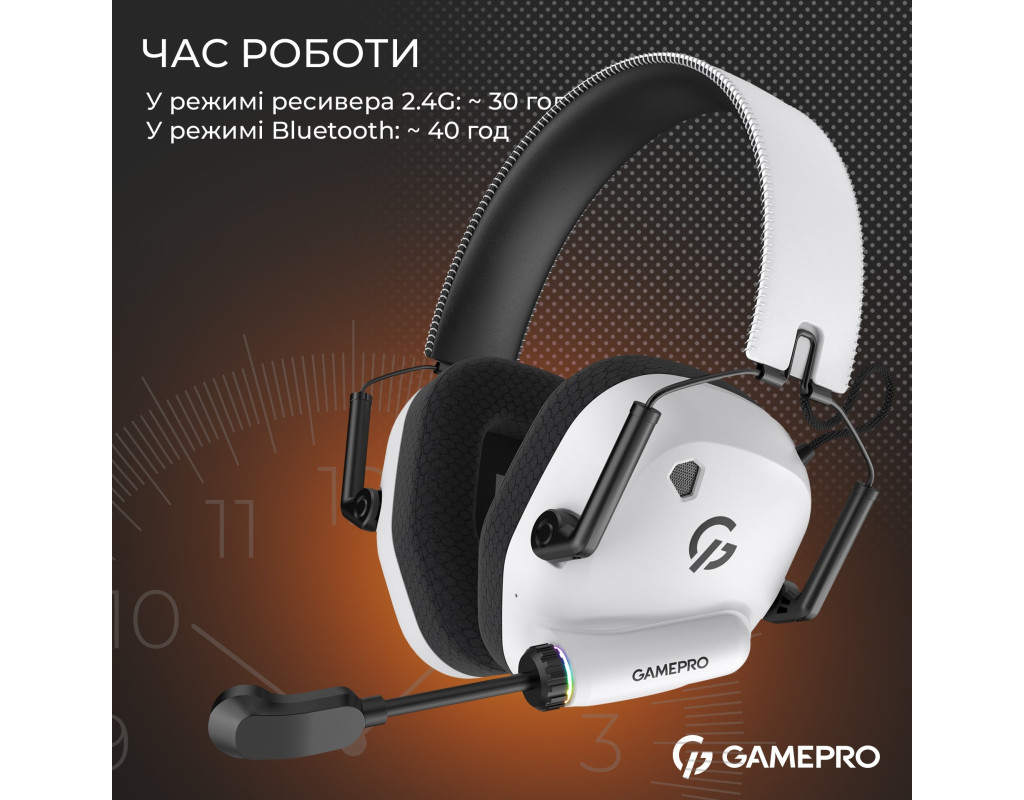 | GAMEPRO HSW120W — це бездротова ігрова гарнітура з трьома типами підключення. Модель оснащена потужними динаміками діаметром 40 мм зі сприйнятливістю 115 ± 3 дБ та широким частотним діапазоном 20-20000 Гц для якісного та об'ємного звуку. Вбудована батарея ємністю 900 мАг забезпечує до 30 годин роботи в режимі ресивера 2.4G та до 40 годин у режимі Bluetooth. Високочутливий мікрофон з чутливістю -42 ± 3 дБ забезпечує чітке спілкування під час гри. Бездротовий зв'язок стабільно працює на відстані до 10 метрів, а час повного заряду акумулятора становить лише близько 2 годин. Ця модель поєднує універсальність, потужність та автономність для комфортної гри. GAMEPRO HSW120B — ідеальний вибір для геймерів, які цінують свободу переміщення та високу якість звуку. |