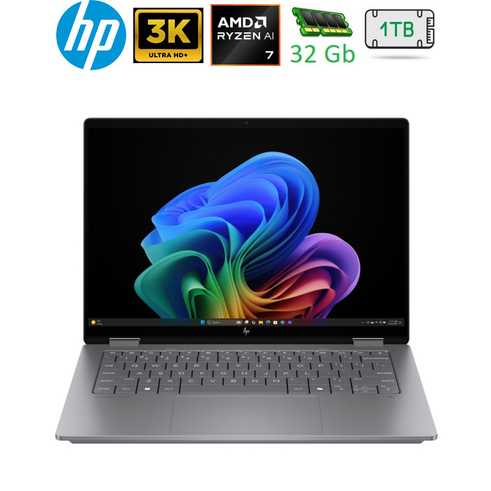 Нехай панує творчість з HP OmniBook X Flip 14 наступного покоління з ШІ. Завдяки універсальним режимам цей тонкий і легкий ПК нового покоління зі штучним інтелектом дає змогу працювати та розважатися з будь-якого місця та під будь-яким кутом. Потужність і швидкість на основі штучного інтелекту, а також акумулятор, який працює на цілий день, забезпечить вам безперебійну роботу. А 14- дюймовий сенсорний дисплей від краю до краю забезпечує найкращий огляд. Душевний спокій завдяки потужності ШІ Творіть завдяки потужності процесора AMD Ryzen AI серії 300 з NPU до 50 TOPS. Творіть у 4 універсальних режимах Творіть у 4 універсальних режимах: розкладачному, наметі, планшеті або зворотному. З’єднання на ходу Підключайтеся на ходу за допомогою Wi-Fi та плавно транслюйте потокову передачу завдяки функції шумозаглушення на основі ШІ та Poly Camera Pro. |