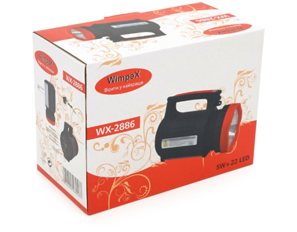 - Ліхтар прожектор Wimpex WX-2886 призначений для пошукових функцій. Так само стане в нагоді, на рибалці, полюванні, відпочинку.
