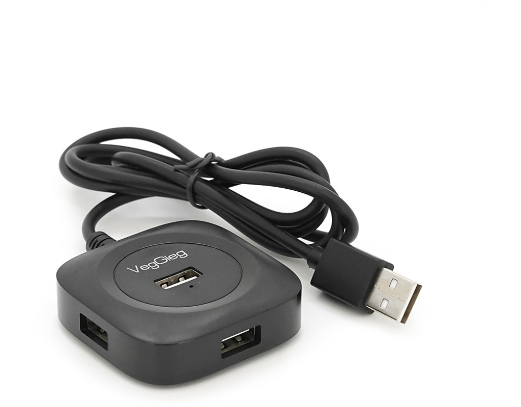 Хаб VEGGIEG V-U2406 USB 2.0 4 порта, 480Mbts, живлення від USB, Black, 1,0m, Box
