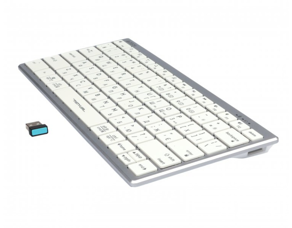 Два в одному. Клавіатура підтримує два режими підключення - за бездротовою технологією Bluetooth і за допомогою USB-ресивера 2.4 ГГц, і працює на відстані до 10 м, забезпечуючи швидку передачу даних без затримок