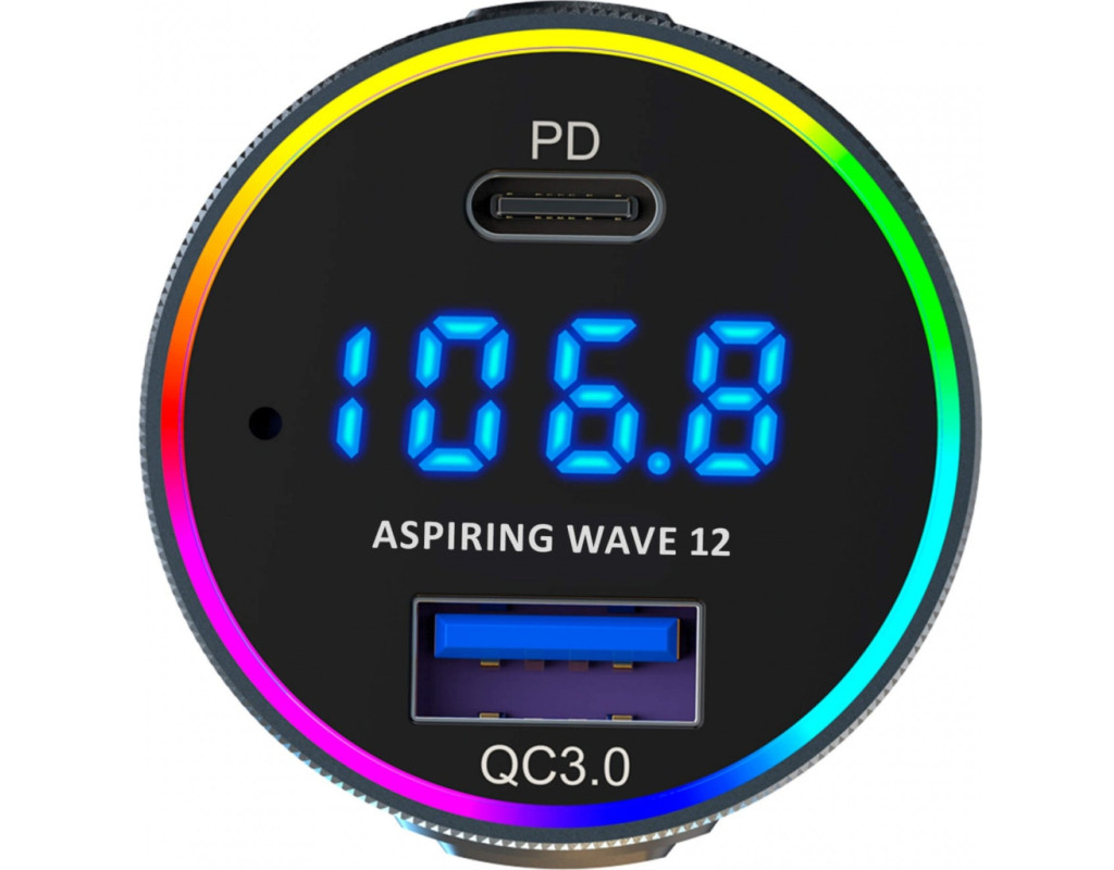 Підключайтеся через Bluetooth не лише для дзвінків, а й для прослуховування музики! Завдяки наявності слота для карти microSD, ви зможете відтворювати музичні файли з зовнішніх носіїв — просто запишіть музику, вставте карту в пристрій і насолоджуйтеся звучанням. FM-трансмітер Aspiring Wave 12 виконано в класичному стилі та оснащено портами для швидкої зарядки: QC 3.0 (18W) та Type-C PD (30W), що дозволяє одночасно заряджати два пристрої з максимальною ефективністю.