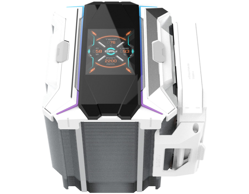 Для процесорів - INTEL, AMD, сокет - AM4, AM5, 1150, 1151, 1152, 1155, 1156, 1200, 1366, 1700, 2011, 2066, матеріал радіатора - алюміній + мідь, діаметр вентиляторів - 120 мм, Максимальна частота обертів - 2200 об/хв, 2300 об/хв, Тип підшипників - гідродинамічний (FDB Bearing), рівень шуму - 37.7 dB, Підсвічування - ARGB, 6 теплових труб