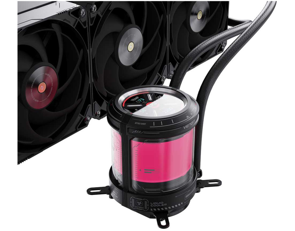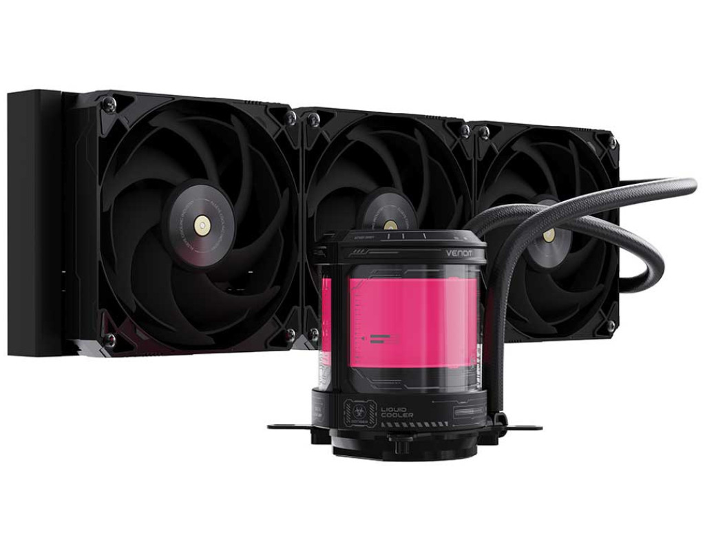Для процесорів - INTEL, AMD, сокет - 1156, 1366, 2011, AM4, AM5, 1150, 1151, 1152, 1155, 1200, 1700, 1851, 2066, діаметр вентиляторів - 120 мм, Підсвічування - немає, 350 Вт, 3000 об/хв, матеріал радіатора - алюміній + мідь, Тип підшипників - керамічний підшипник кочення (Ceramic bearing), рівень шуму - 45 dB, роз'єми живлення - 3-pin (помпа), 4-pin (вентилятор), чорний